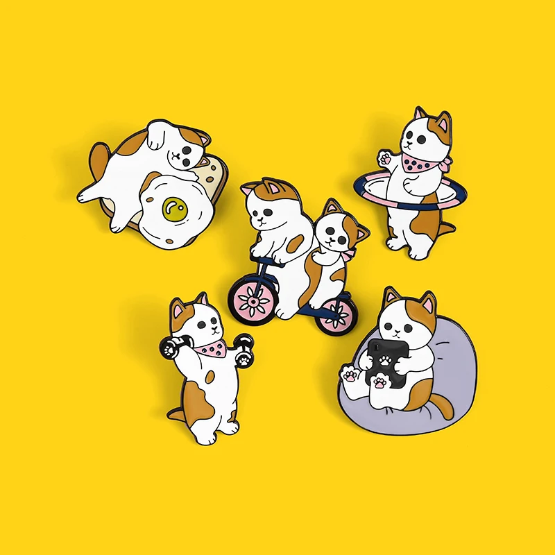 Мультяшный Кот яйцо велосипед гантели хула кольцо Броши забавные ко...