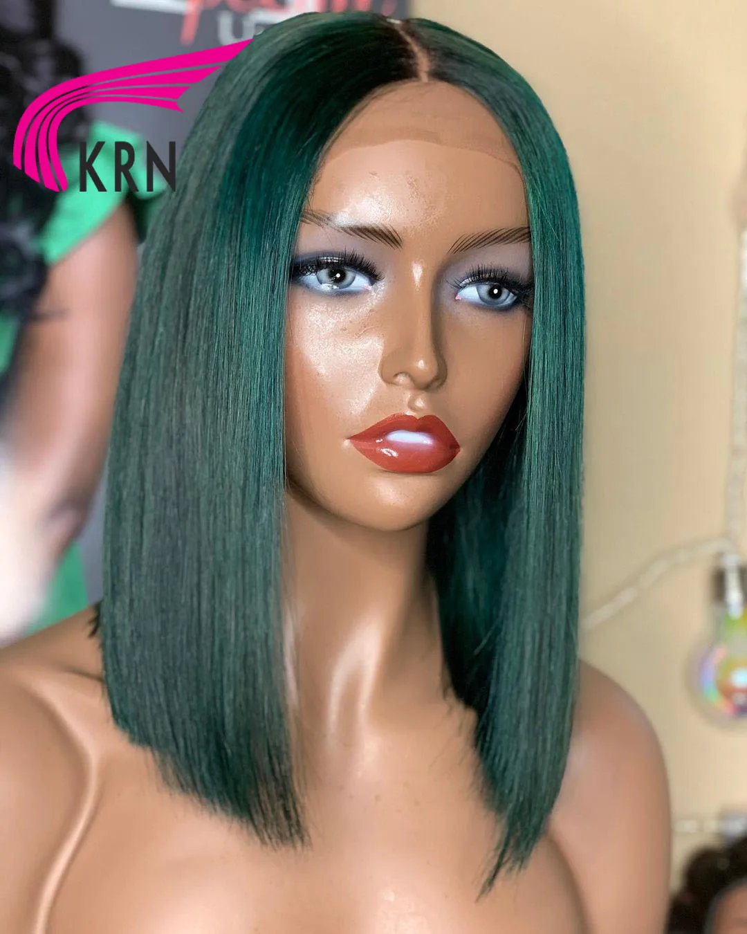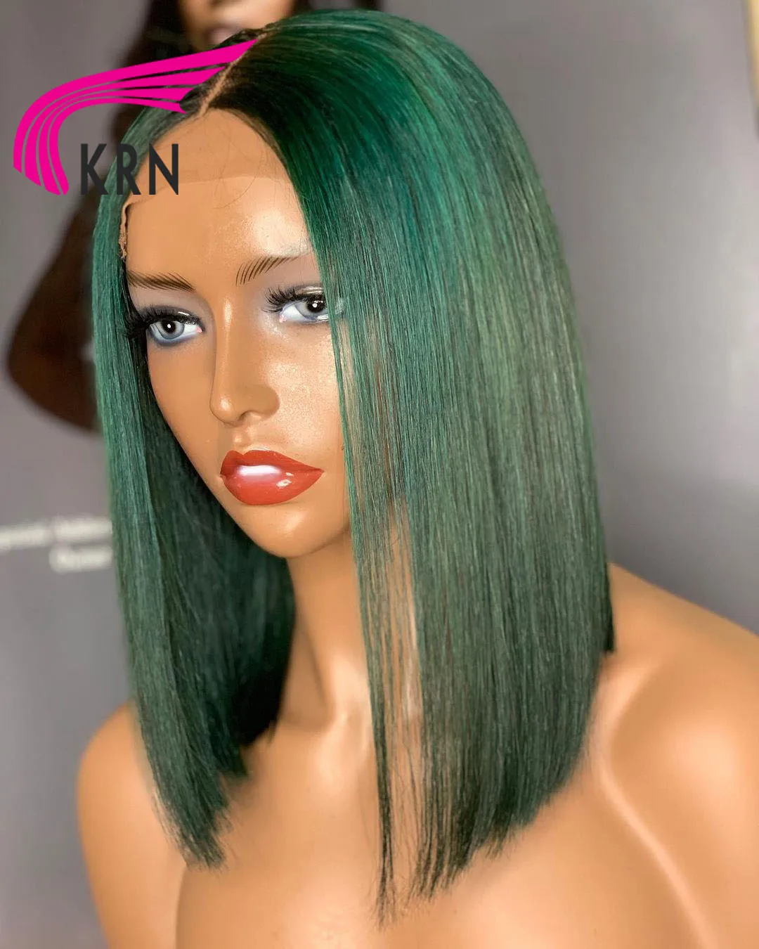 KRN зеленый боб парик фронта шнурка 180 плотность короткий Боб бразильский remy парик фронта шнурка человеческие волосы парики зеленого цвета Боб прямой парик