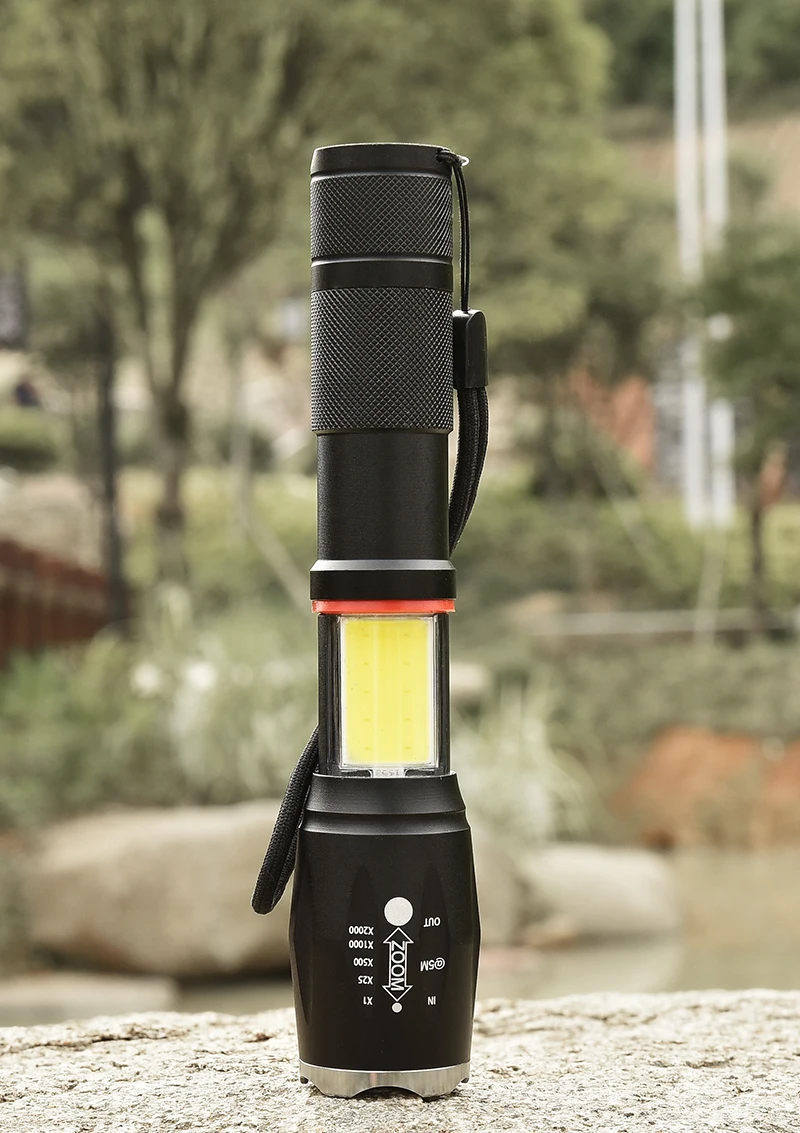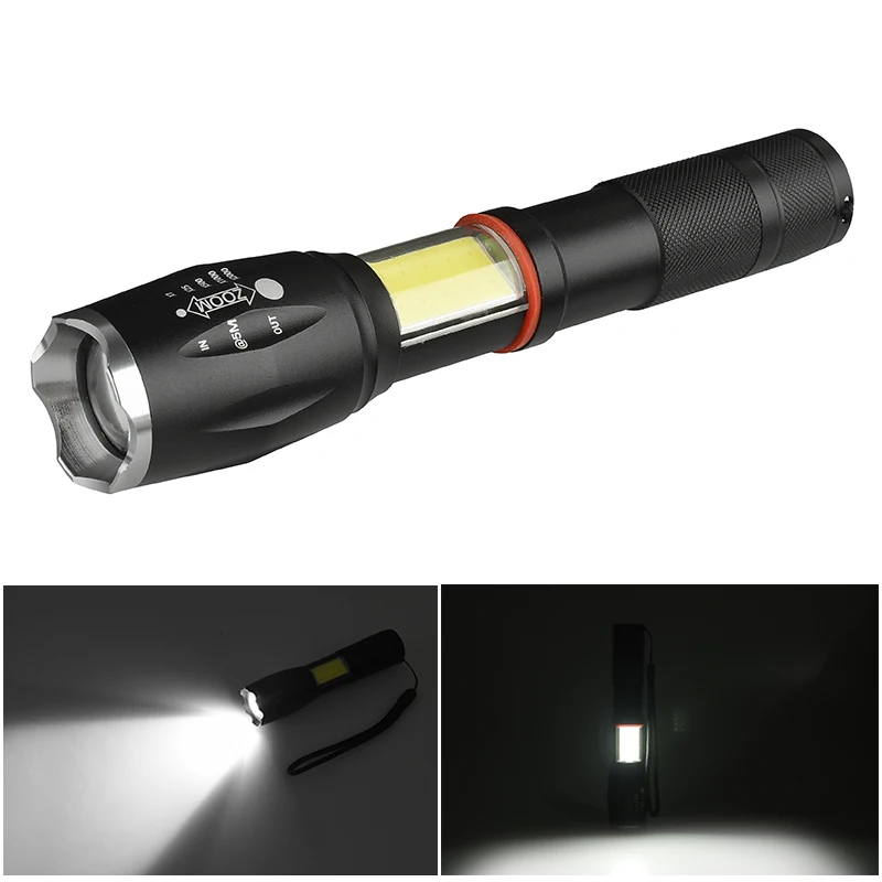 3. Бусины: Imort светодиодный Beads4. Режим:6 режимов (T6 high/ T6 medium/ T6 Low/ T6 Strobe/ T6 SOS/ COB Light)5. Срок службы лампы: 100000 часов6. Цвет Фонарика: черный7. Излучаемый Цвет: светильник8. Переключатель: Задняя крышка Clicky/Clickie9. Линзы: выпуклая линза10. Материал корпуса: прочный авиационный алюминий11. Батарея: 1 *Батарея 18650 или батарея 3 * AAA (не входит в комплект)12. Размеры: 15,3 см * 3,4 см * 2,8 см
