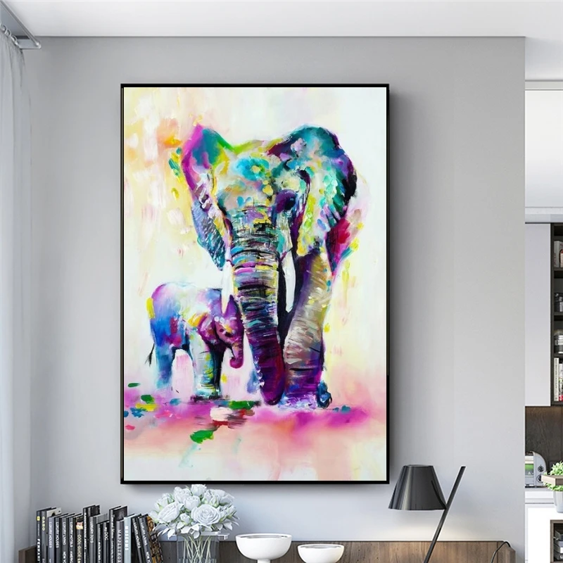 Красочные олень и слон Семья холст настенные картины художественные плакаты и принты Nordic Животные художественные картины для домашнего декора