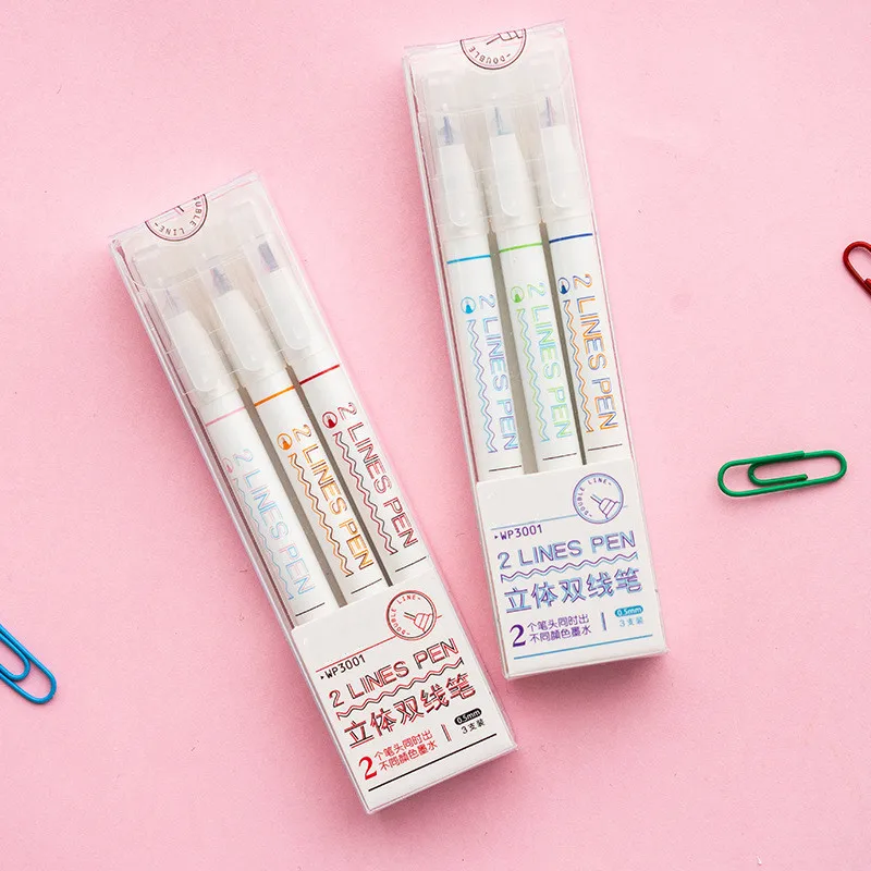 6 шт./кор. 2 линии Ручка Комплект двойная линия водных чернил красные, синие Цвет наконечник искусство рисования лайнер Скрапбукинг 0,5 мм канцелярские принадлежности для офиса и школы