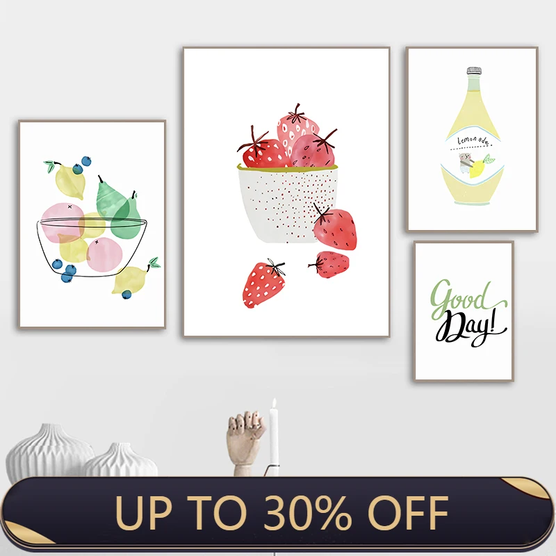 Настенный постер в скандинавском стиле, с изображением фруктов, лимон, клубника