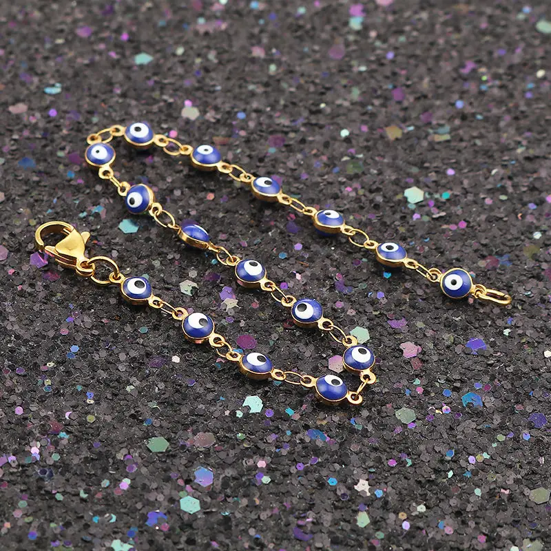 Браслеты из нержавеющей стали с эмалью сглаза, модные ювелирные укр...
