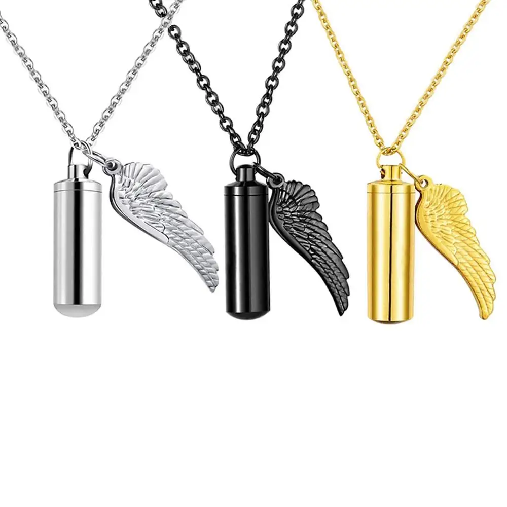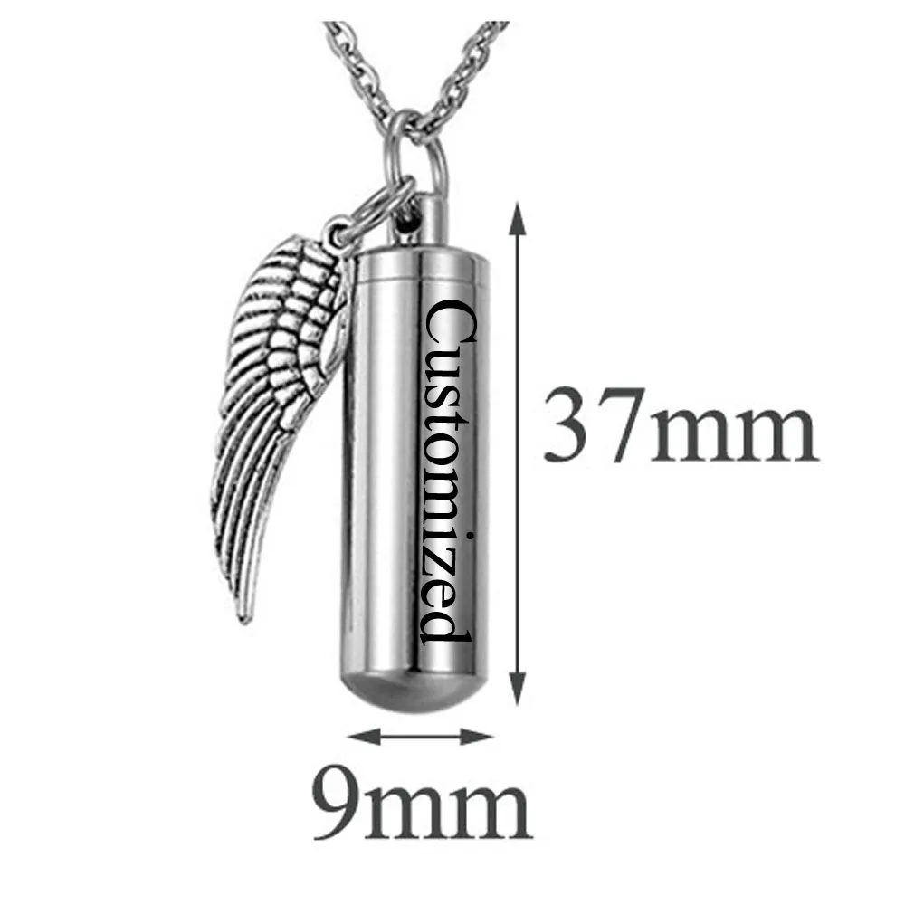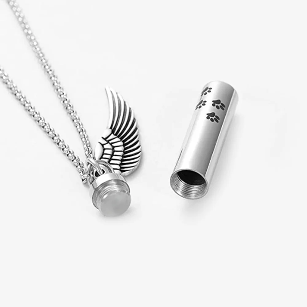 Индивидуальный держатель из нержавеющей стали, цилиндрический кулон-урна с лапой питомца и крылом ангела, очаровательное памятное ожерелье для кремации, ювелирные изделия