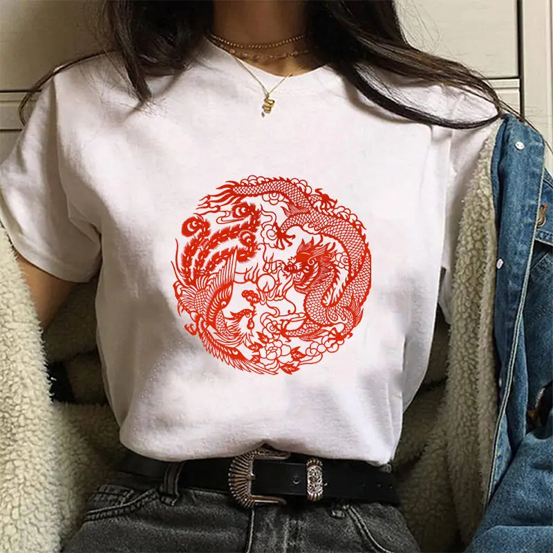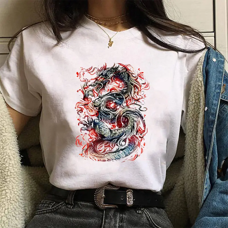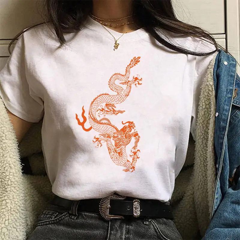 Футболка женская с рисунком китайского дракона, милая рубашка в стиле Харадзюку, с коротким рукавом, уличная одежда, лето 90-х