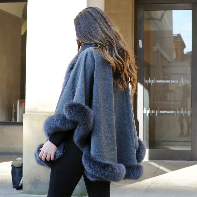 Зимняя плотная теплая кашемировая шаль, пальто высокого качества с воротником из натурального Лисьего меха, плащ, пальто, подарок для матери, новая модная накидка, халат, верхняя одежда