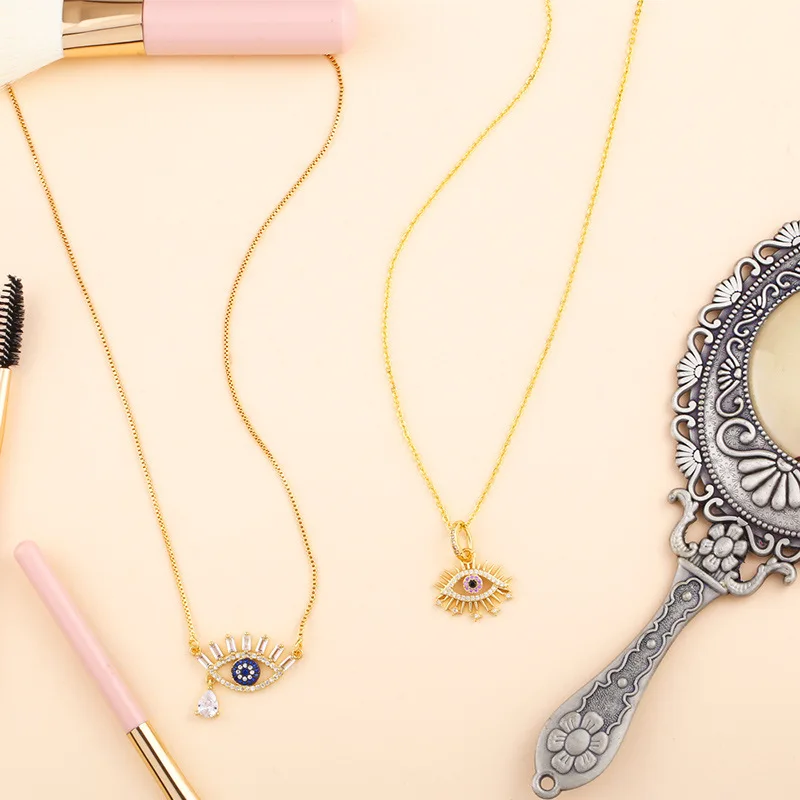 Золотое ожерелье с греческим глазом для женщин, циркониевое ожерель...