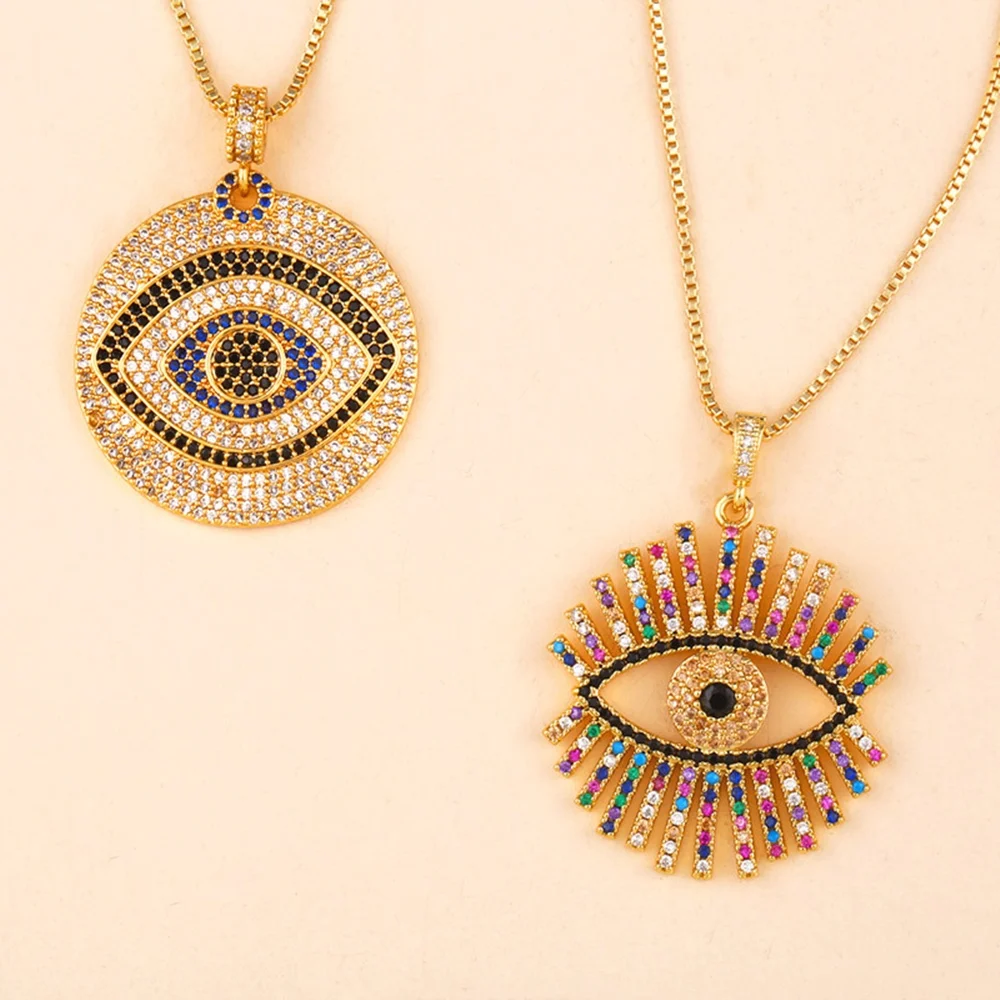 KSRA богемное позолоченное Латунное ожерелье с кубическим цирконием сглаза для женщин Винтажная Радужная цепочка в коробке ожерелье с подвеской в стиле бохо ювелирные изделия