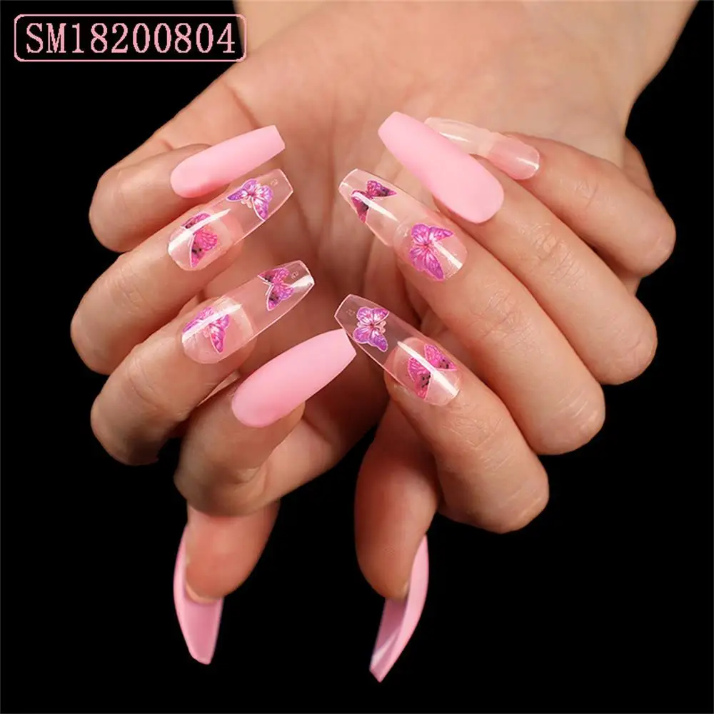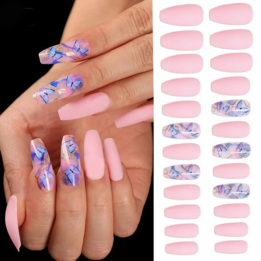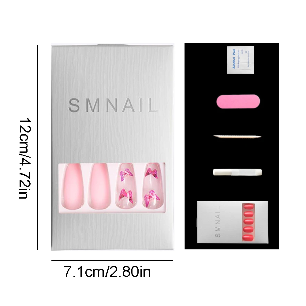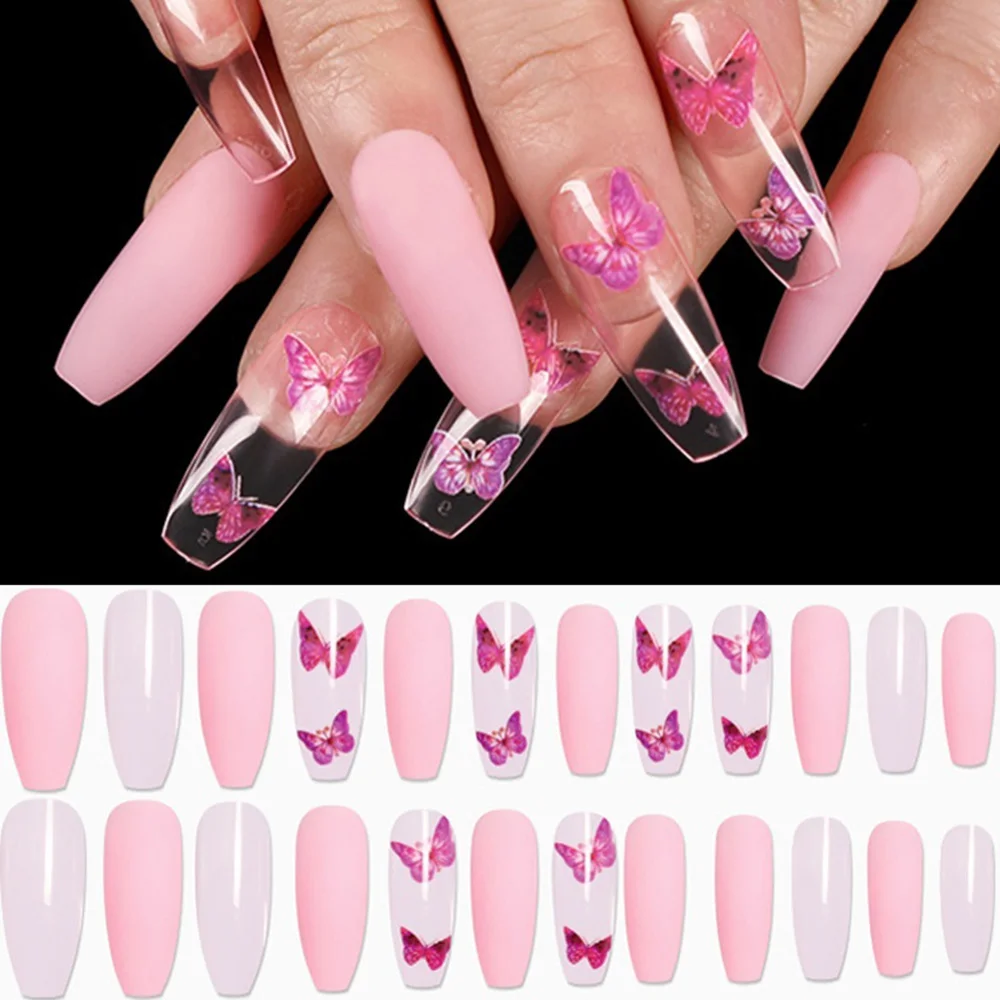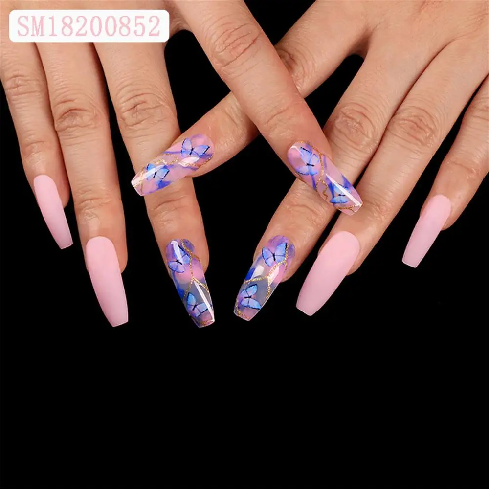 24 шт.кор. бабочки накладные ногти для ног в виде цветных шариков модный стилет балерина гроб, полного покрытия, накладные ногти Нейл Арта, набор инструментов для маникюра