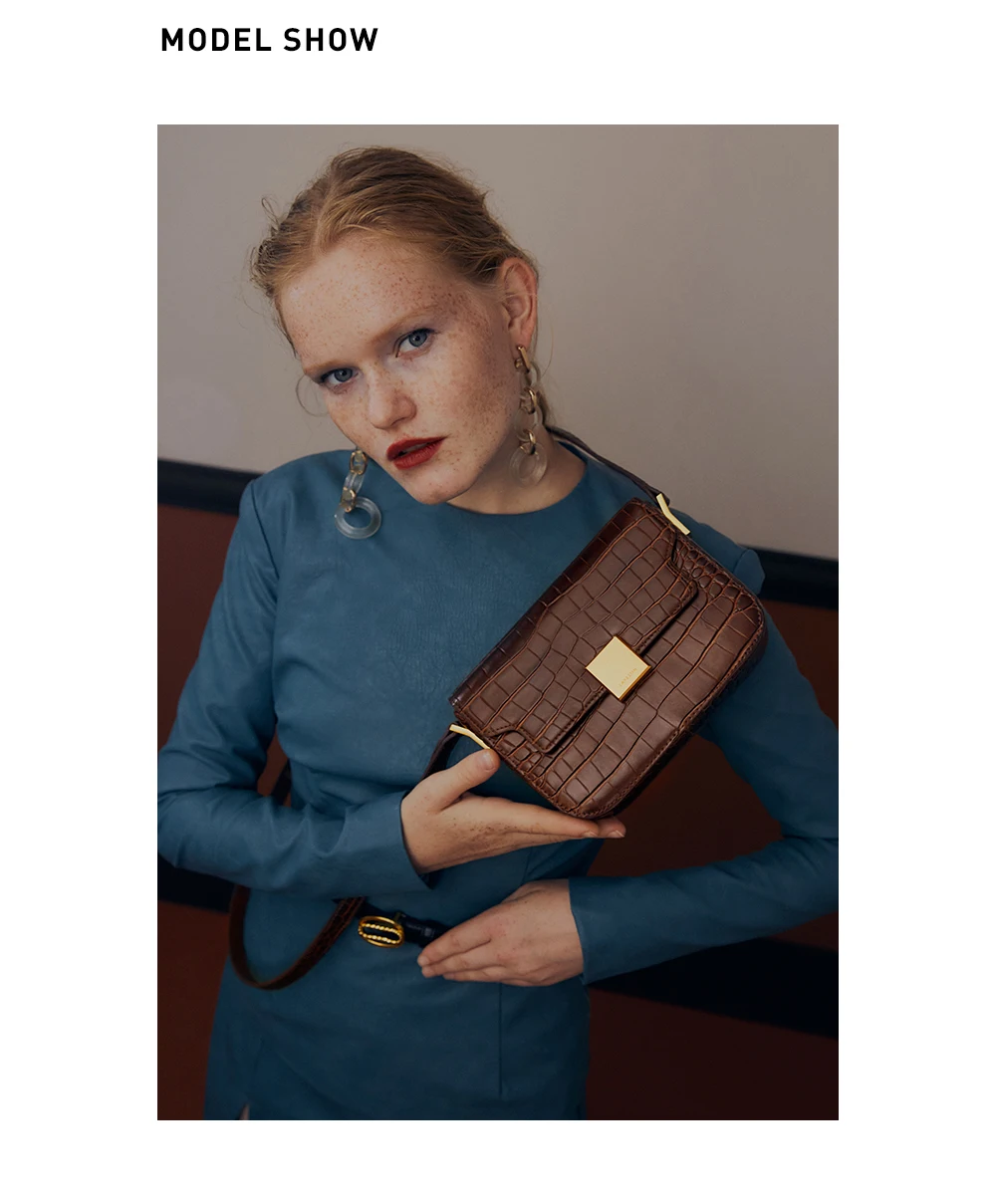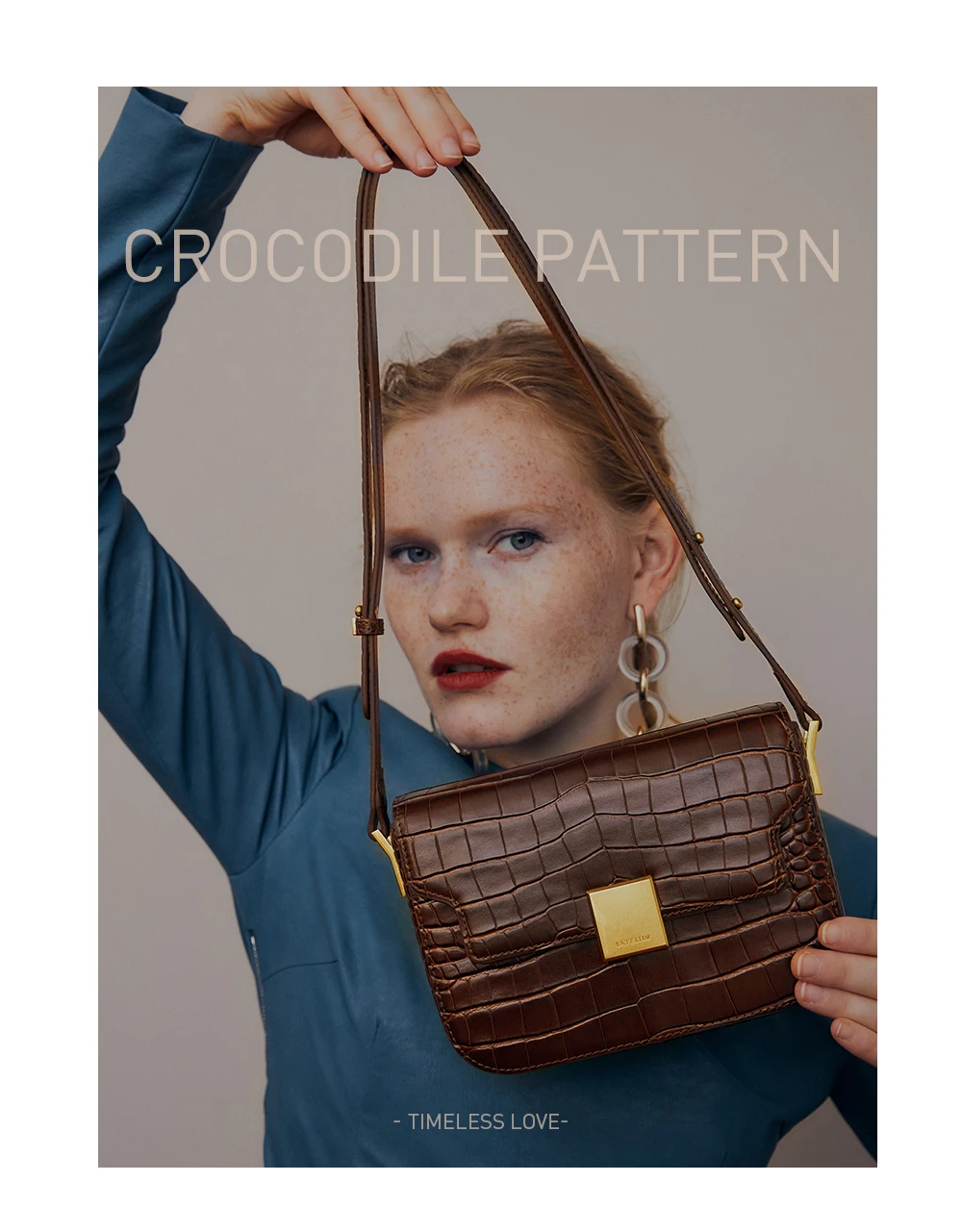 LA FESTINНовинка 2021 года; Модная женская сумка-мессенджер на одно плечо в стиле ретро с узором крокодиловая кожа; Маленькая квадратная сумка; Трендовый бренд высокого качества