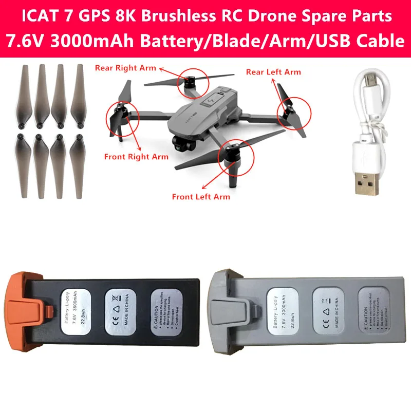 Название позиции: ICAT 7 8K 5G WIFI FPV GPS бесщеточный Радиоуправляемый Дрон запасные части 7,6 V 3000mAh аккумулятор/рычаг/пропеллер/USB кабель для зарядки