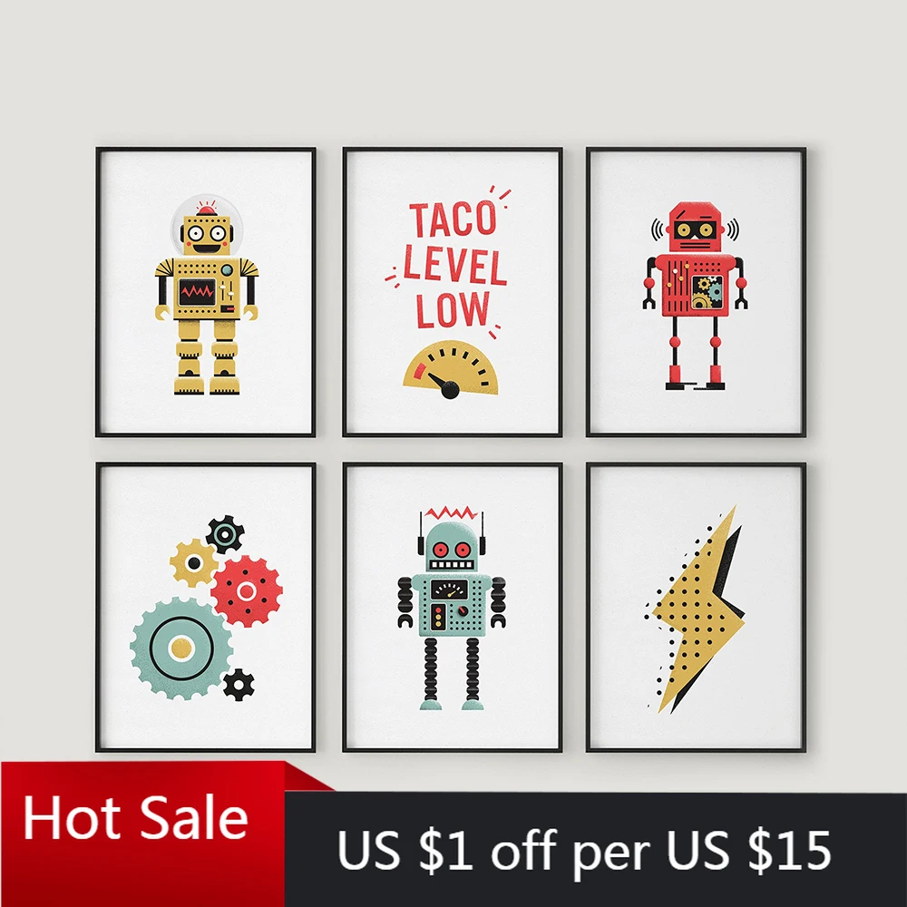 Картина на холсте с мультяшным роботом, рисунки, искусство на стене, Декор, картины для детской комнаты, украшение, подарки на день рождения