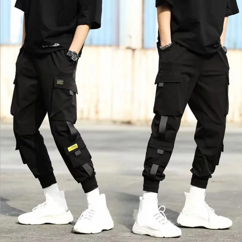Брюки-карго мужские с боковыми карманами, Модные Повседневные Дышащие штаны с завязкой на щиколотке, брюки 910