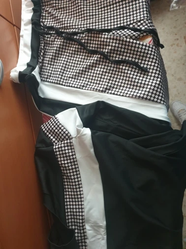 No es la misma tela de la foto. Es licra y la talla es grande. Uso la xs y pedí la S y aún me va grande. los dibujos son algo diferente. No me a gustado nada.