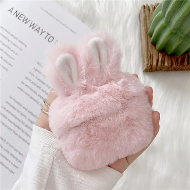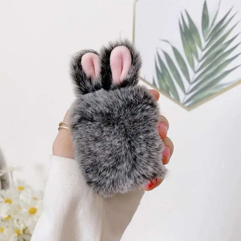 Милый пушистый чехол с кроличьими ушками для Apple Airpods, чехол для наушников с силиконовым мехом, чехол для наушников Airpods Pro21, чехол для наушников с мультяшным рисунком