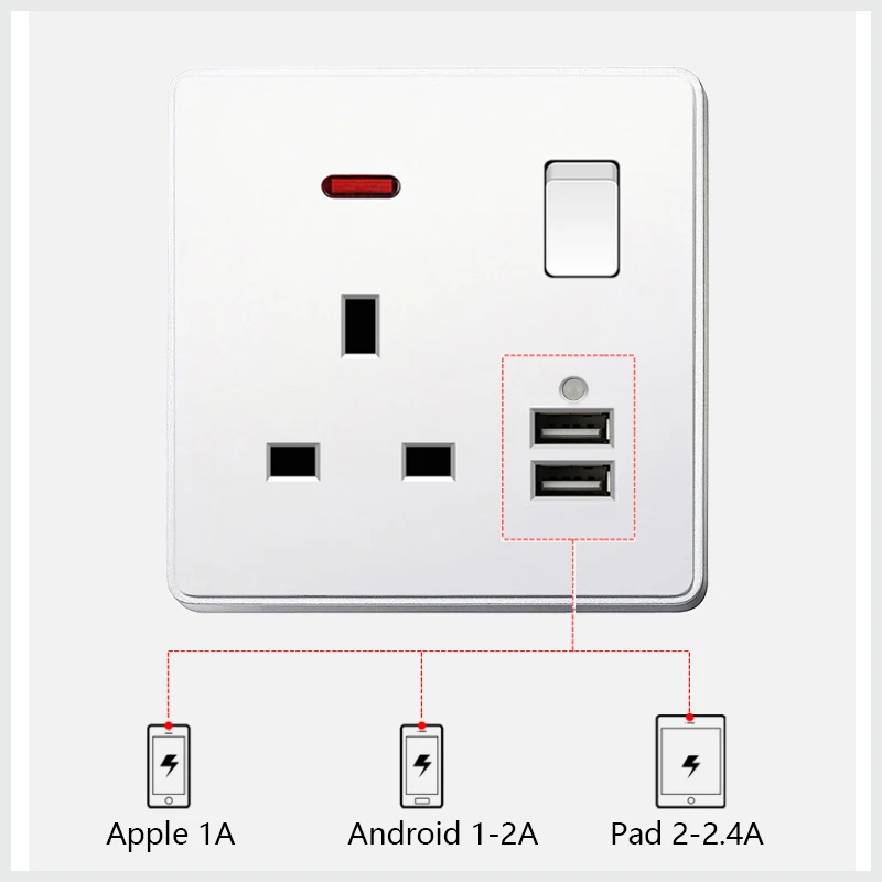 Великобритания стандартный разъем питания 13A двойной USB порт светодиодный индикатор одна двойная розетка Malta Сингапур белый пластик 86 146 Тип переходник usb,разетка с usb для дома,розетки