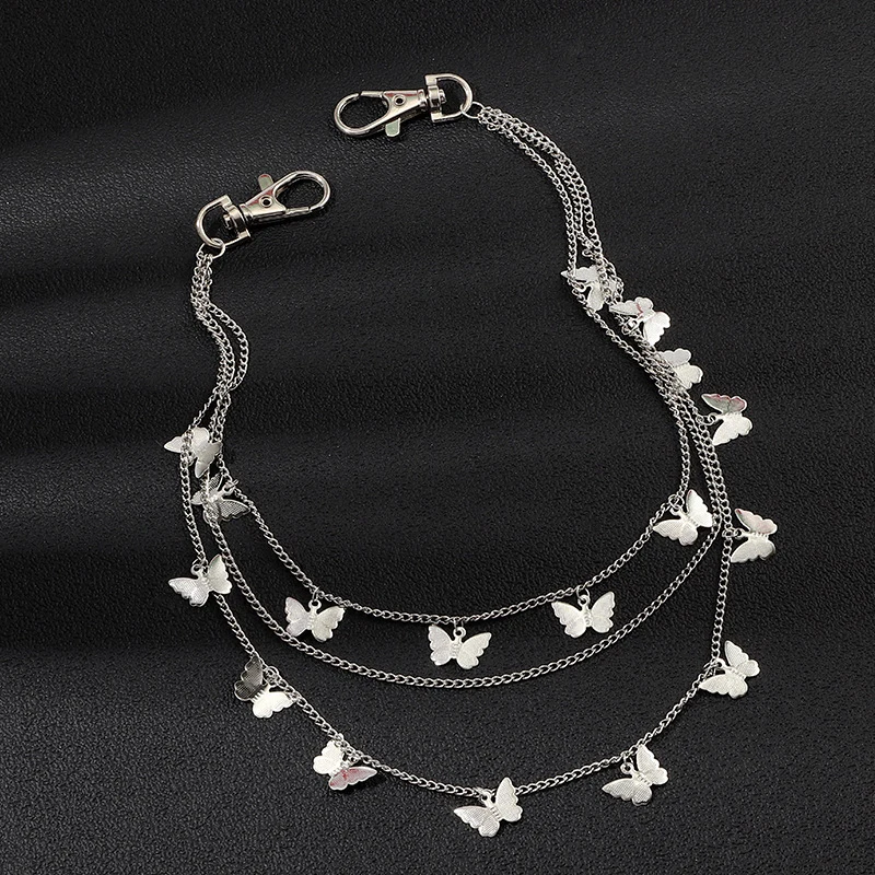 Женская цепочка для брюк, многослойная драгоценность для брюк, ювелирные изделия, золотистый, серебристый, в стиле панк, уличная мода, с бабочкой