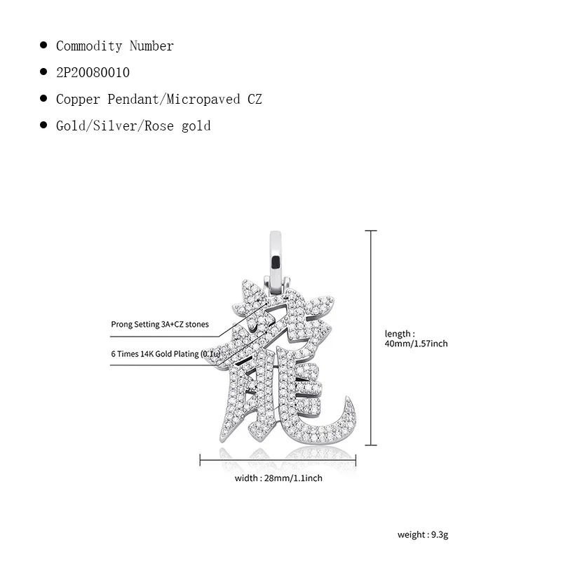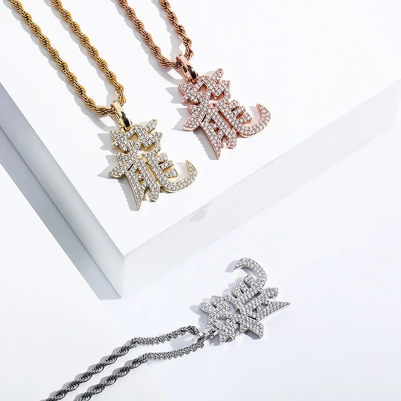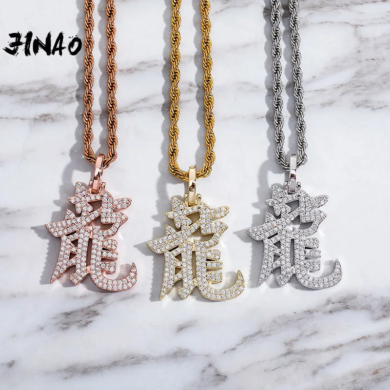 JINAO 2020 футболки в стиле хип-хоп, кулон высокое качество Личность льдом AAA + CZ китайские иероглифы длинный кулон ювелирные изделия