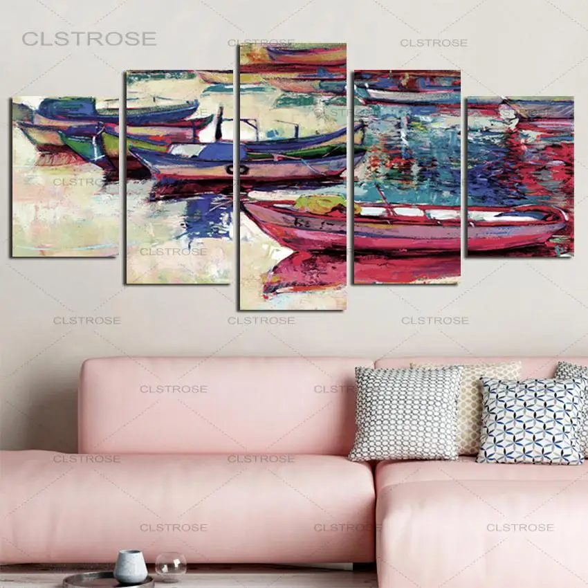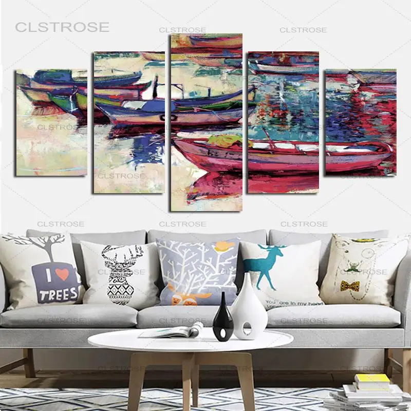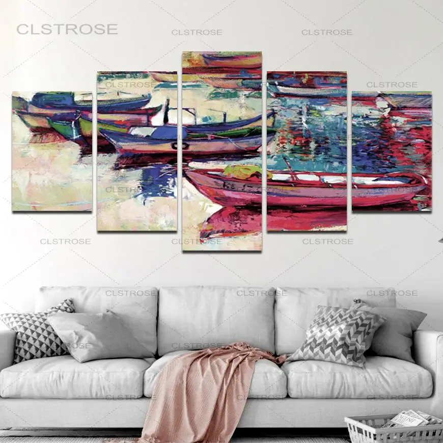 5 панелей холст печать морской пейзаж украшение плакат корабль масляная живопись Настенная живопись пляж волна современный стиль без рамки