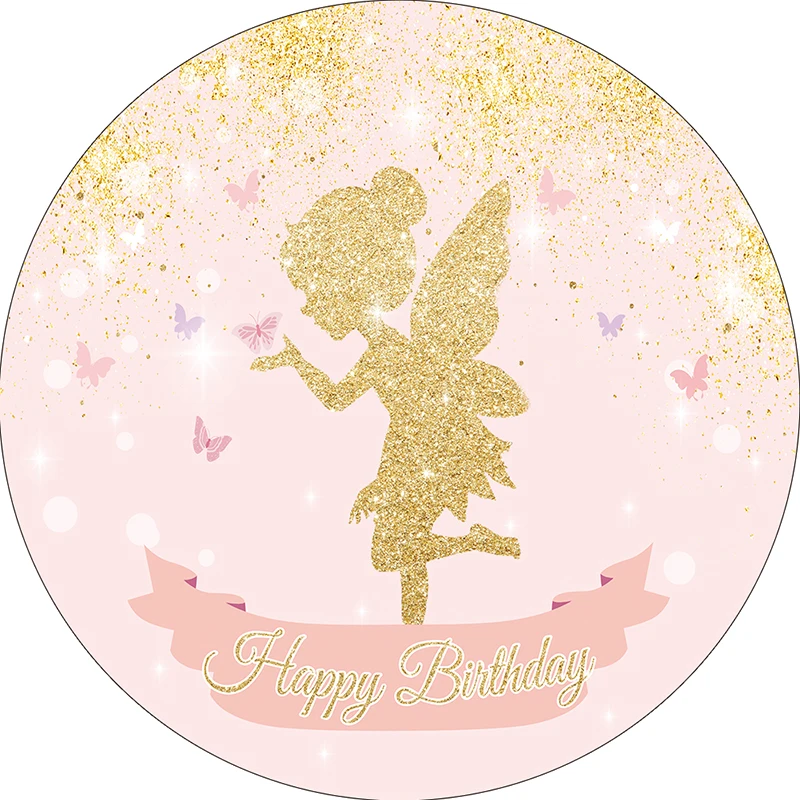 Круглый фон для фотосъемки Allenjoy с изображением бабочки и эльфа для вечеринки в честь Дня Рождения золотистый розовый баннер для вечеринки в честь рождения ребенка