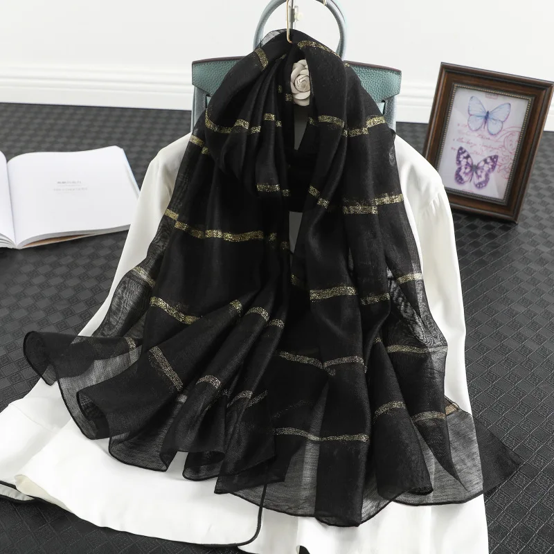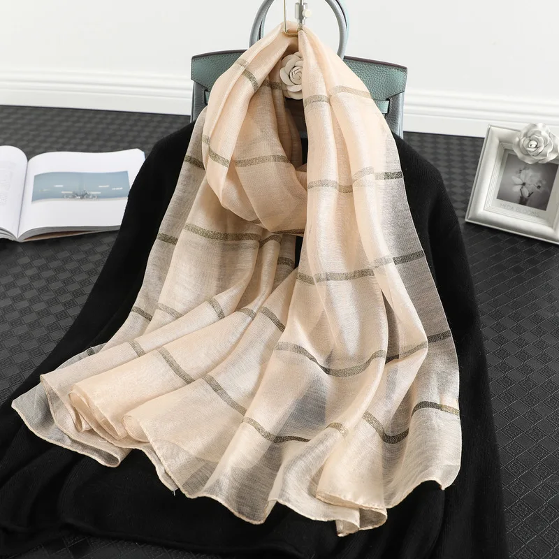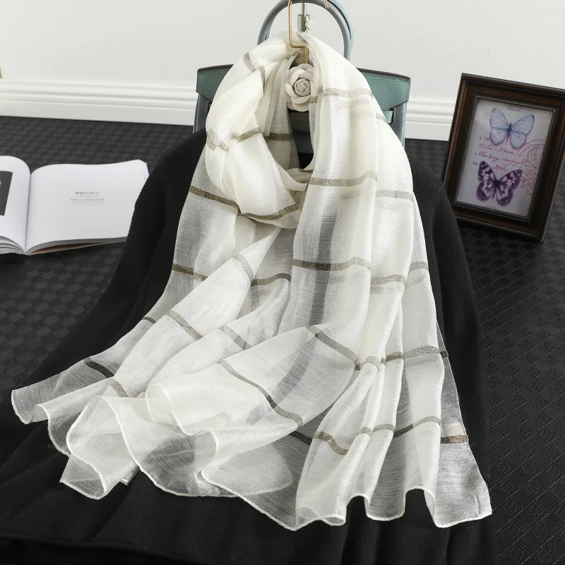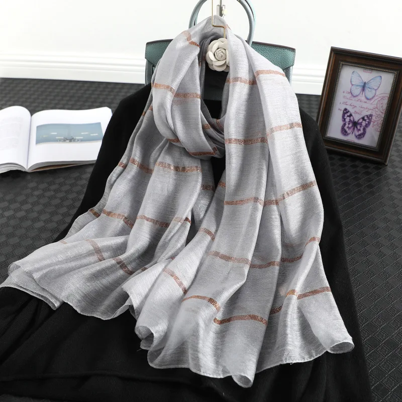 Шарф женский из натурального шелка, в полоску, зимний, 2020