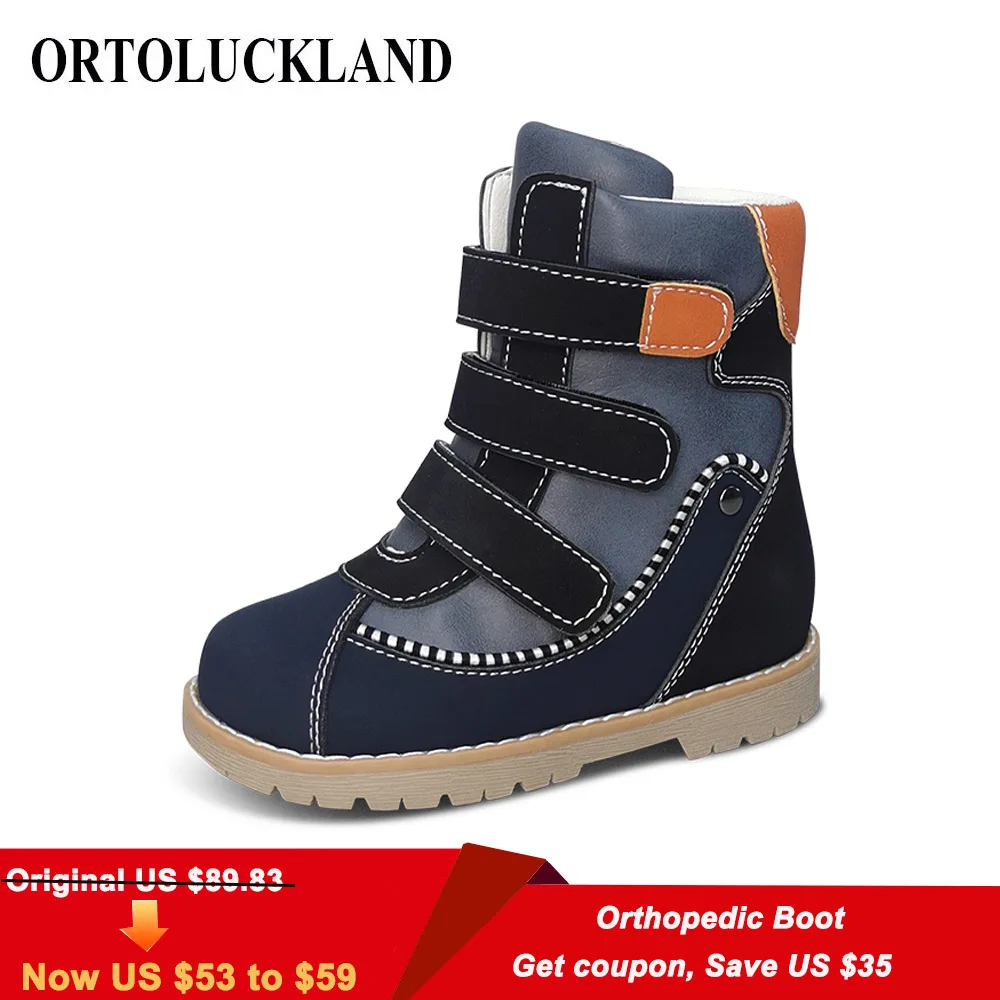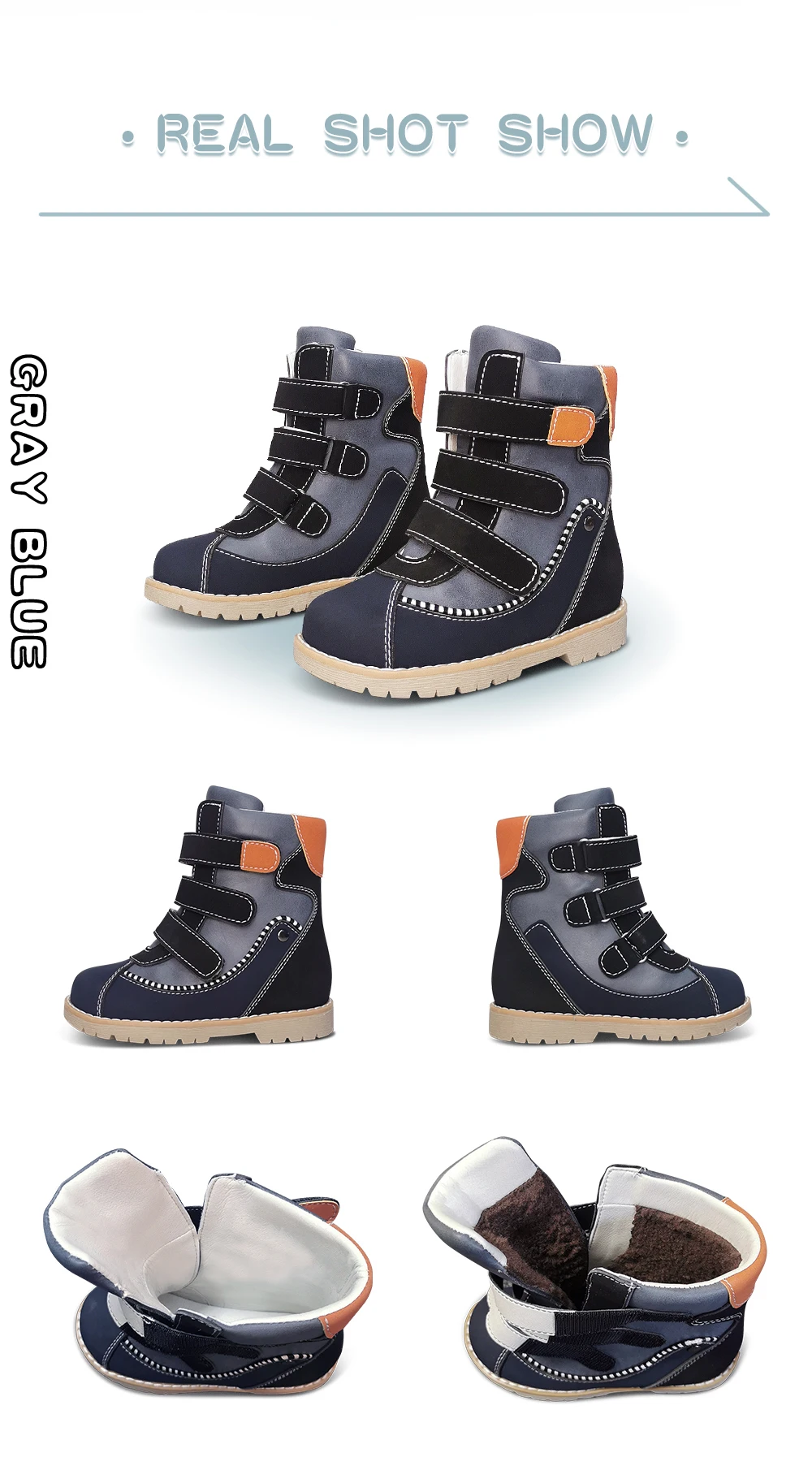 Ортопедические ботинки для мальчиков и девочек, из коровьей кожи, с круглым носком