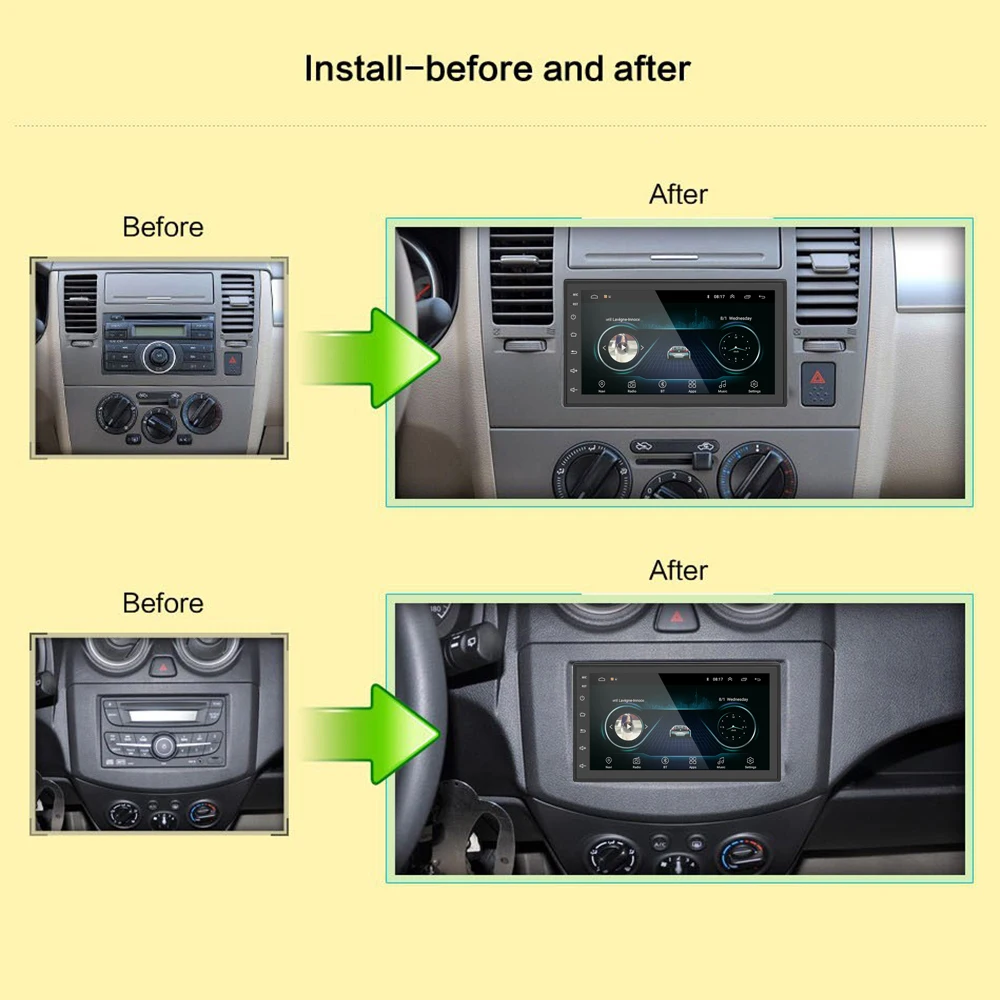 Основная особенность: 1. Операционная система Android, вы можете установить приложения, приложения, Google Play Store, Skype, Facebook, YouTube, Twitter и многое другое. 2. 2.5D HD емкостный экран: разрешение 1024*600, не 800*480 3. Процессор: четырехъядерный процессор Cortex RAM ROM: 1G 2G 16G 32G Поскольку система занимает внутреннюю память, операционная система занимает около 4-6 ГБ памяти. Бесплатная установочная карта 4. Шнур питания легко подключить, просто подключите его непосредственно к шнуру питания. 5. Формат Мультимедиа: MP3, MP4, WMA, JPEG и т. Д. Поддержка воспроизведения видео 1080P 6. Поддержка Bluetooth hands-free, поддержка телефонной книги 7. Поддержка оригинальной кнопки рулевого колеса автомобиля 8. Встроенная Wi-Fi антенна для подключения к ближайшим точкам доступа Wi-Fi. Используйте телефон в качестве точки доступа к Wi-Fi. 9. Поддержка GPS карт, таких как Google Online MapYandex.navi / Waze on Line / Sygic... 10. Частотный диапазон FM: 87,5-108 МГц, FM интегрирует 18 предварительно настроенных сайтов 11. Языки с множеством экранных меню: китайский (упрощенный), русский, испанский, турецкий, русский, иврит, итальянский, китайский (традиционный), арабский, французский, немецкий, английский, португальский, 48 языков, включая корейский, Таиланд и т. Д. Посылка включает в себя: 1 х автомобильное радио 1 x Антенна GPS 1 х электропроводка 2 usb-адаптера 1 х RCA входной и выходной провод Общая проблема: Могу ли я слушать музыку или радио при использовании навигации? Да, вы можете слушать радио или музыку во время использования навигационной системы. Устройства Clayton используют уникальную технологию, которая позволяет слушать музыку во время использования навигационной системы. Примечание: 1. Пожалуйста, обратите внимание на модель и год автомобиля при заказе, и соответствует ли консоль автомобиля описанию в ссылке продукта. (Если вы не уверены, может ли он быть установлен, пожалуйста, свяжитесь со службой поддержки клиентов, чтобы предотвратить ошибки при покупке) 2. Этот продукт не имеет sd-слота, но имеет два USB слота Его популярное название-система dvd-плеера Android, элемент не имеет функции DVD / CD, он поддерживает съемный жесткий диск USB / U 3. Если вы не понимаете, вы можете проконсультироваться с сотрудниками Службы поддержки клиентов