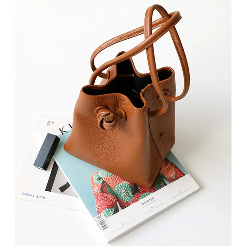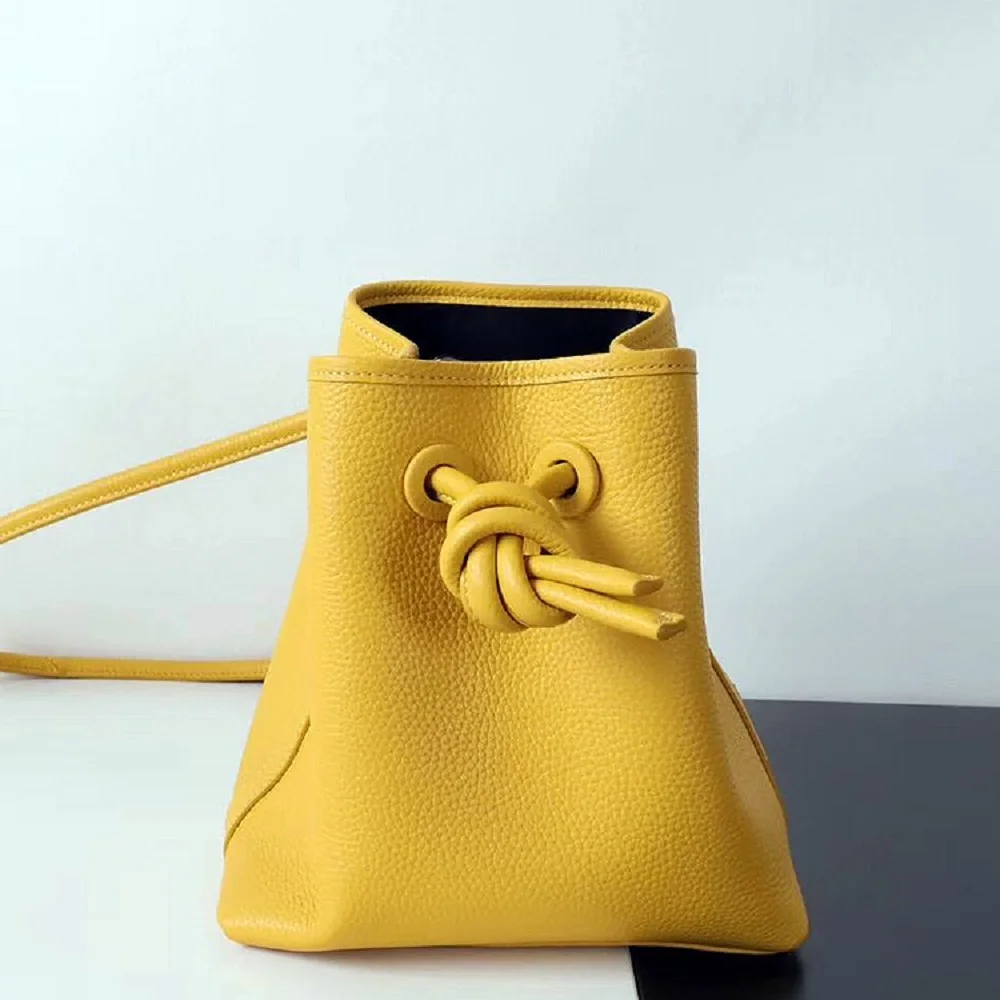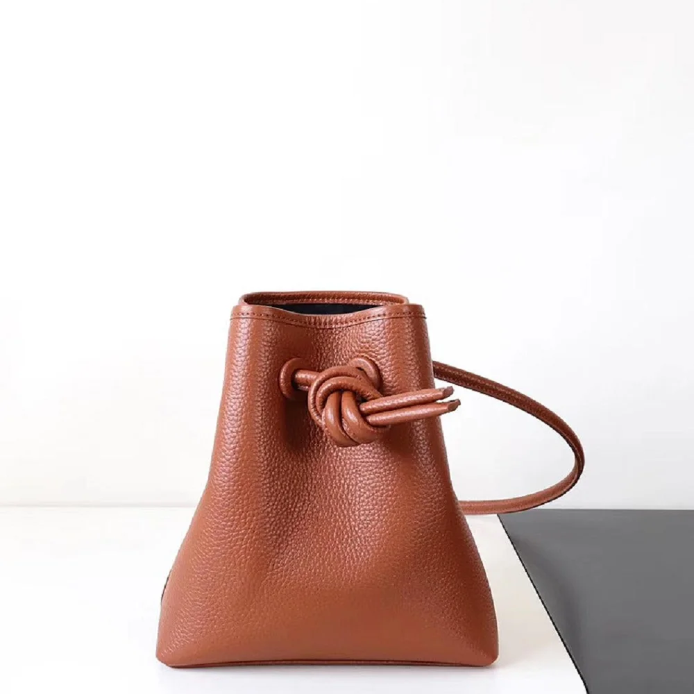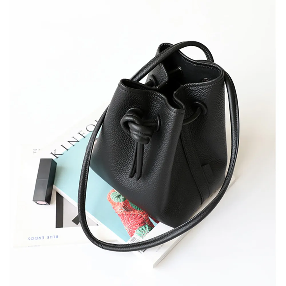 Сумка женская из воловьей кожи, на шнурке, в японском стиле