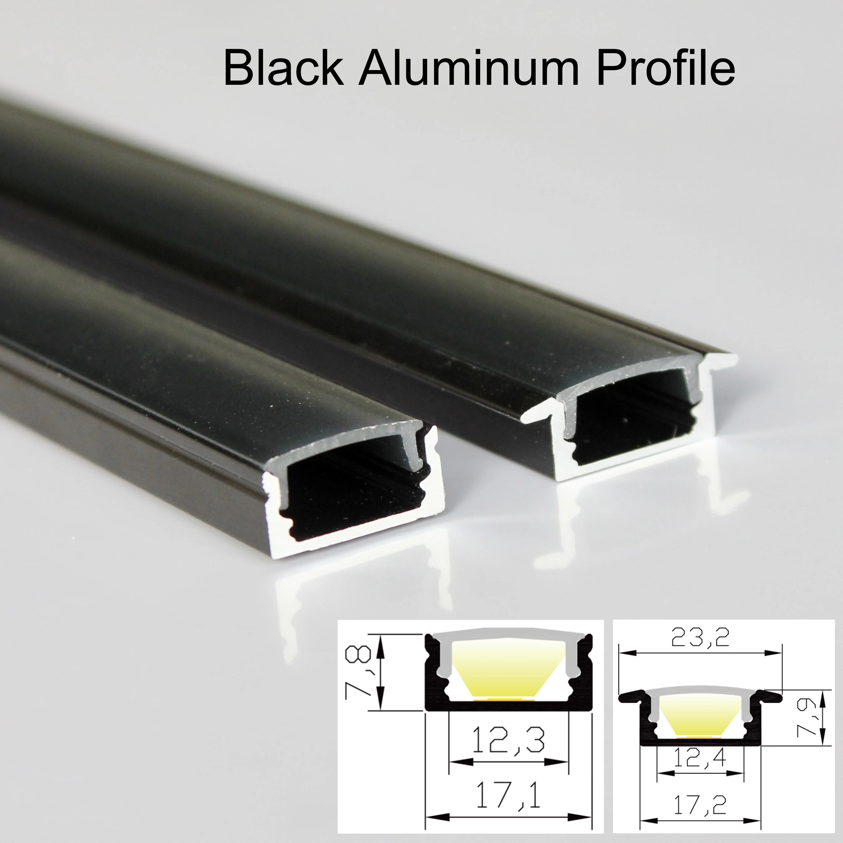 5 м (10 шт.) в партии, 0,5 м за штуку, черный алюминиевый профиль для светодиодной ленты с черныммолочнымпрозрачным покрытием