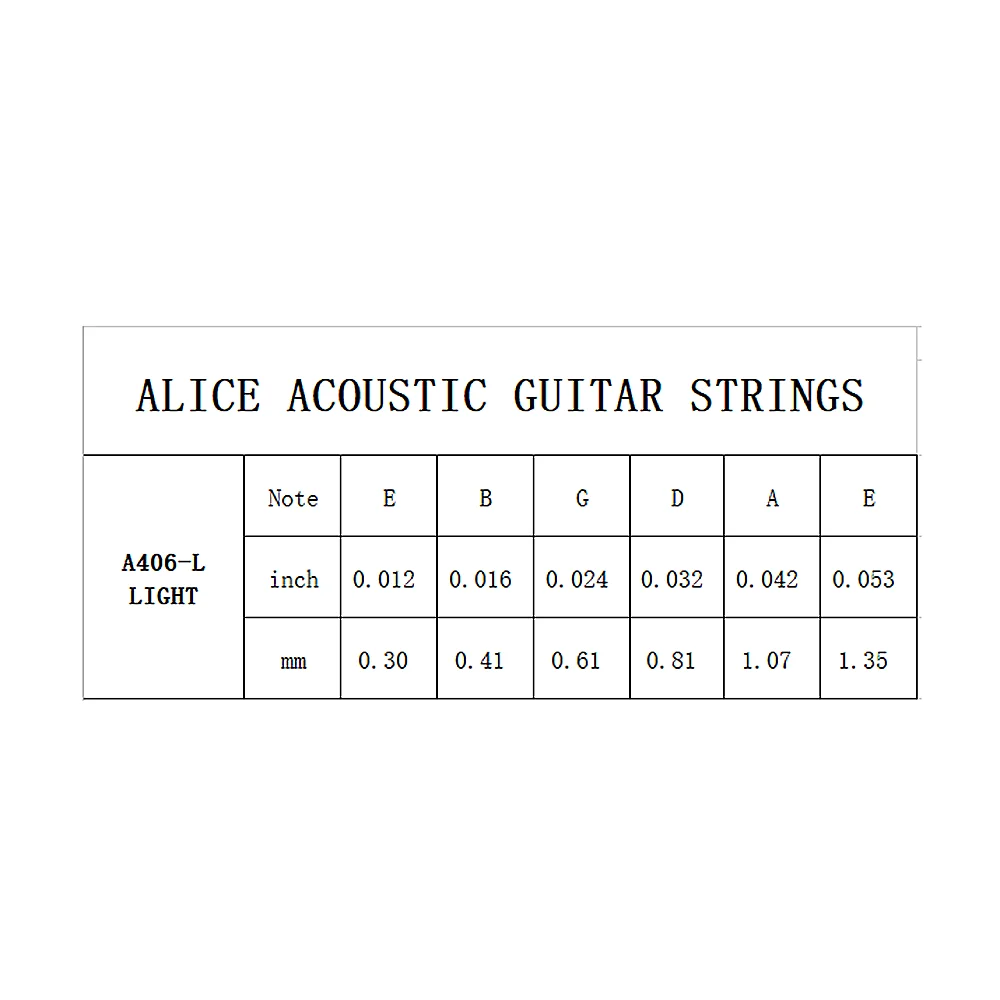 Фирменная новинкаАлиса Набор из 6 струн.Подходит для акустической гитары.Их тембры милые, красивые и чистые. Долгая жизнь.Материал: высокое качество нержавеющей стали струны и покрытые медные сплавные проволоки.Никелированный шаровой конец;Цвет: струны из нержавеющей стали x 2, проволоки из медного сплава с покрытием x 4Датчик: A406-L подходит для акустической гитары6 разных размеров струн:E-1st .012 "(0,30 мм) из нержавеющей сталиB-2nd .016 "(0,41 мм) из нержавеющей сталиG-3rd .024 "(0,61 мм) с покрытием медного сплаваD-4th .032 "(0,81 мм) с покрытием медного сплаваA-5th .042 "(1,07 мм) с покрытием медного сплаваE-6th .053 "(1,35 мм) с покрытием медного сплаваКаждая веревка индивидуально упакована в свой герметичный полиэтиленовый пакет и отмечена номером, с уникальным серебристым блестящим цветом, прочным для ежедневного использования.Посылка включает:6 струн/набор Акустических Гитарных Струн