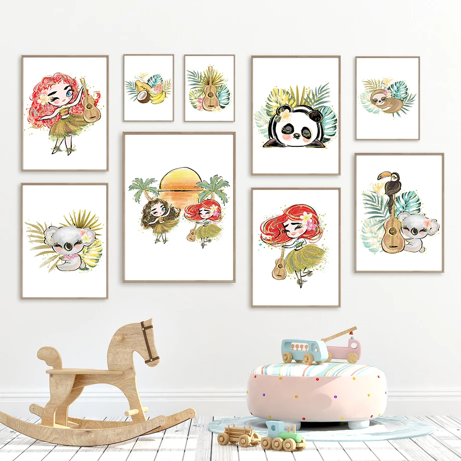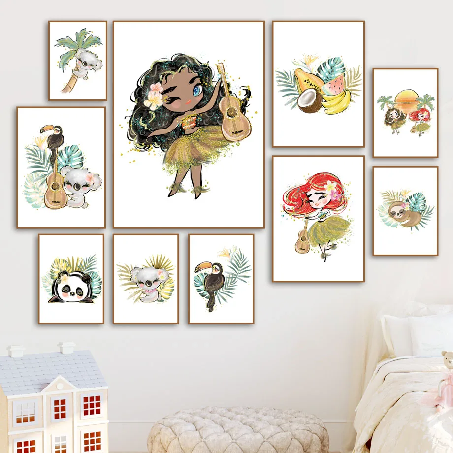 Милая девушка Самба тропические фрукты Ленивец Тукан настенная Картина на холсте скандинавские плакаты и принты настенные картины для декора детской комнаты