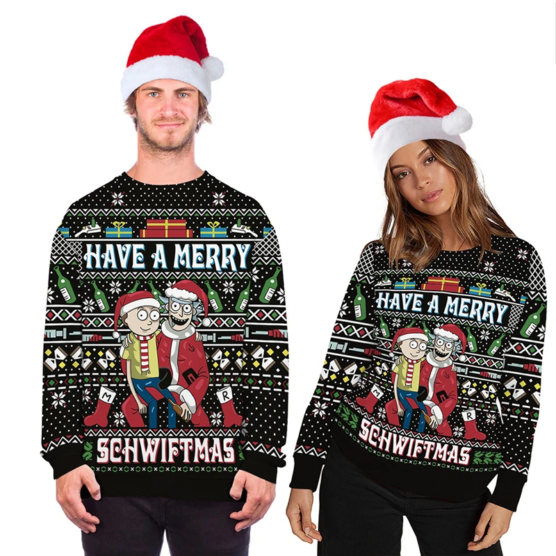 Свитер с забавным 3D принтом уродливым рождественским принтом, джемперы для мужчин и женщин, осенне-зимняя одежда, топы, пуловеры, свитшоты для рождественской вечеринки