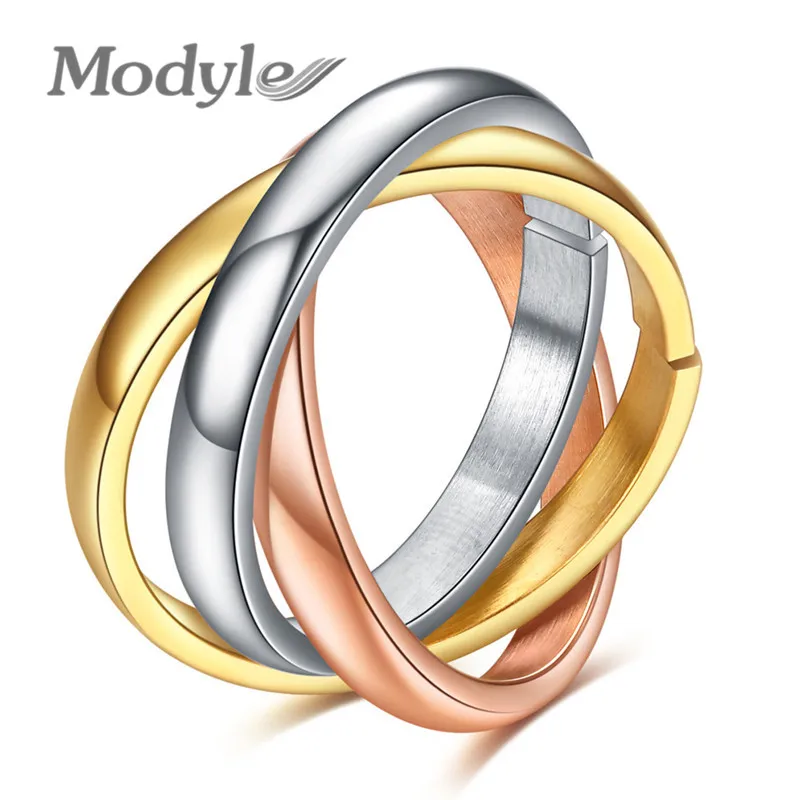 Классические 3 Круги кольца наборы для женщин из нержавеющей стали ...