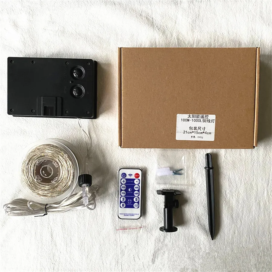 100 м 1000LED солнечные сказочные огни с дистанционным управлением, наружные садовые гирлянды, солнечные медные провода, гирлянды для рождественской свадьбы