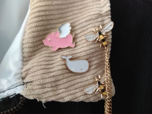 Замечательные значки!! Качественные, аккуратные) Иголка закрыта замком из силикона (или что-то похожего) и она ничего не цепляет и не портит изделие изнутри.