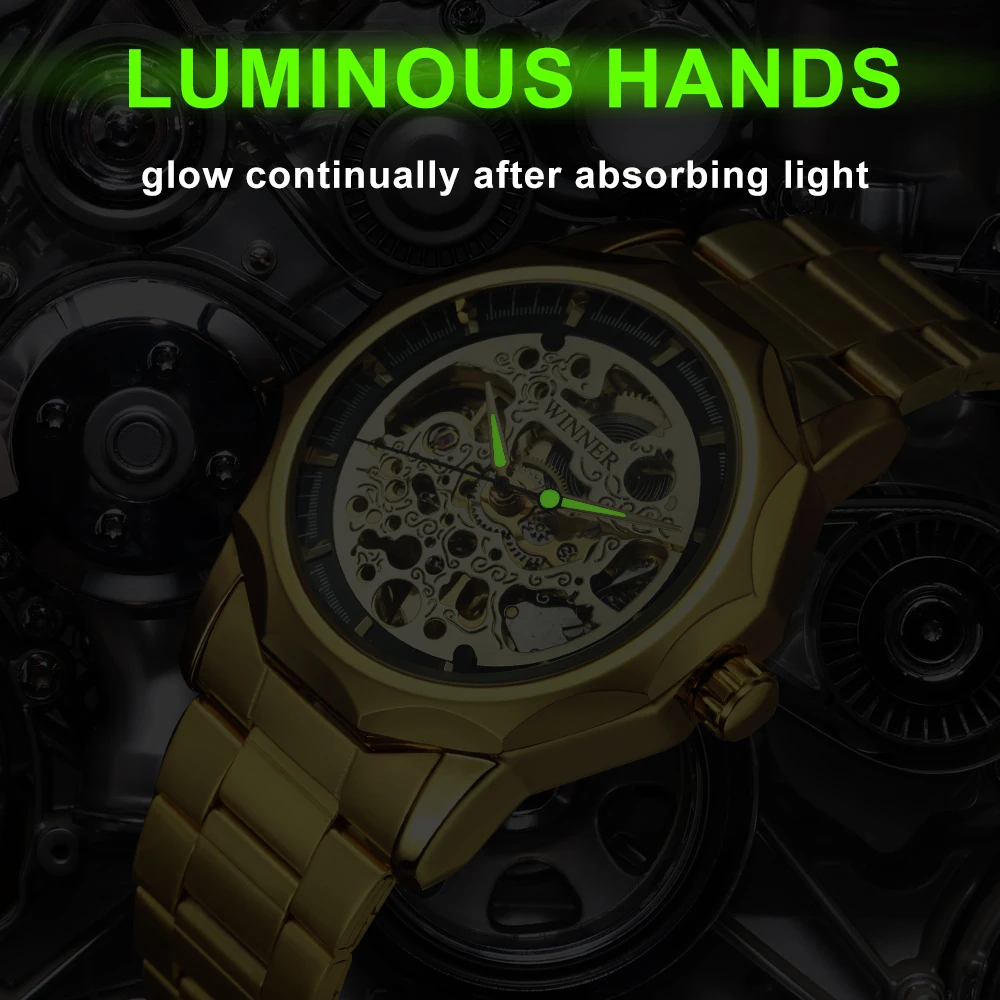 Победитель официальный автоматические механические часы Для мужчин Роскошные золотое богато оформленное Сталь ремешок Скелет Бизнес универсальные классические relogio 2020