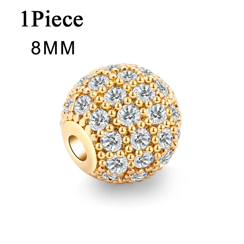 Оптовая продажа DIY медные бусины-спейсеры Micro Pave CZ Циркон Корона Подвески для изготовления браслетов из бисера 8 мм диско-шар Круглые Бусины