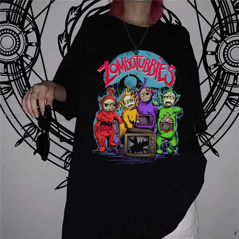 Женская футболка с коротким рукавом dreamchenbay-jf, забавная Футболка с принтом The Conjuring Of Teletubbies, хлопковая одежда для женщин, топы в уличном стиле