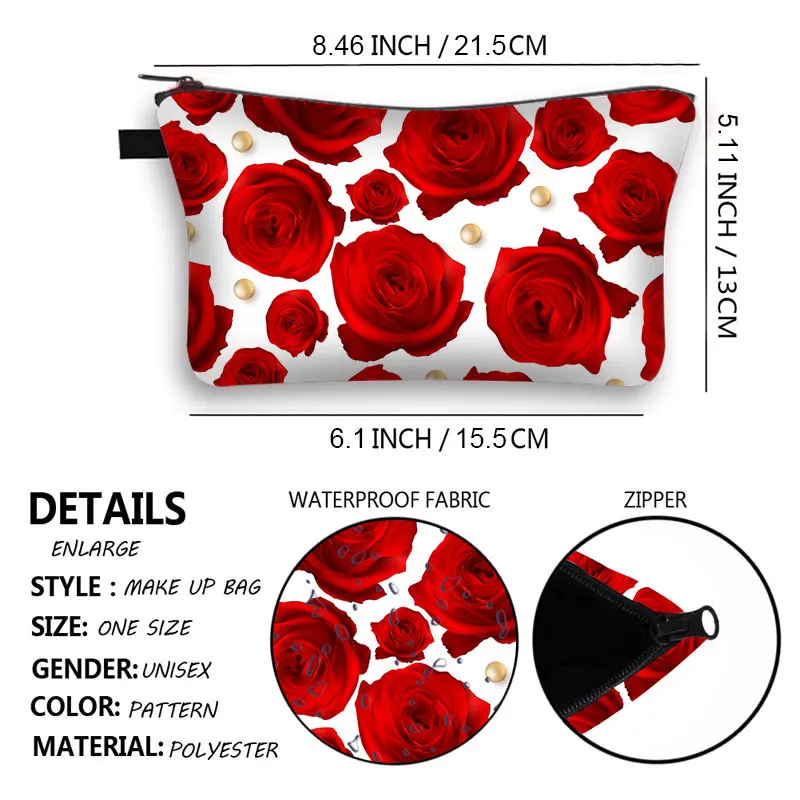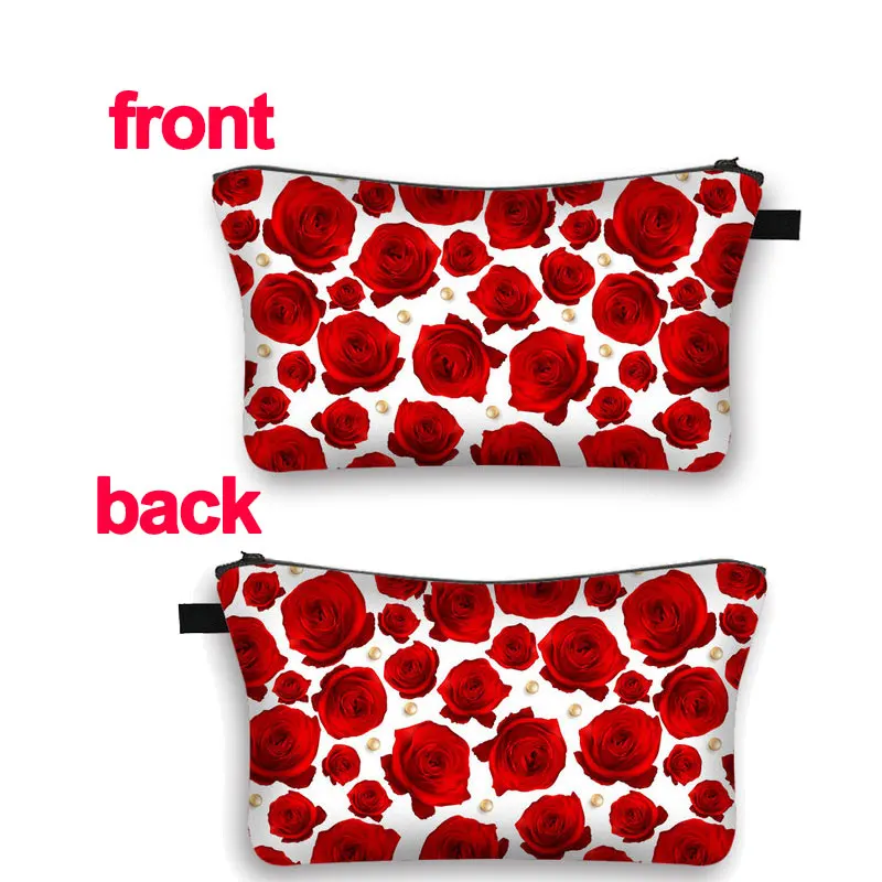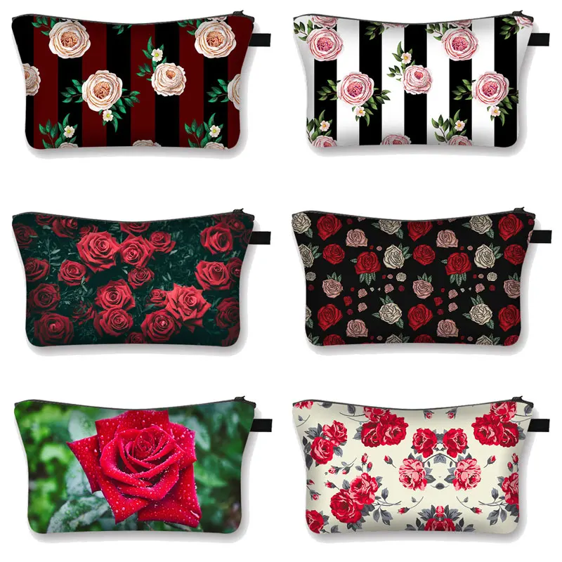 Женский косметический Органайзер, Сумка с красными розами, черная косметичка с 3D принтом, модная женская брендовая косметичка, коробка для макияжа для девушек