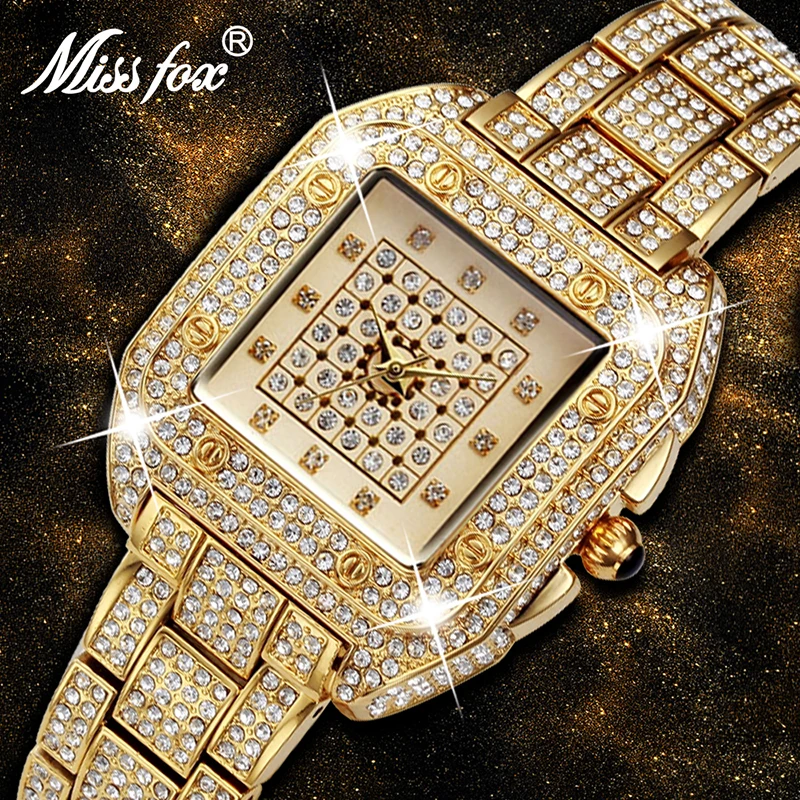 Известный бренд, женские прямоугольные часы MISSFOX, классические, элегантные, со стразами, Iced Out, водонепроницаемые, женские часы, подарок, relogio feminino