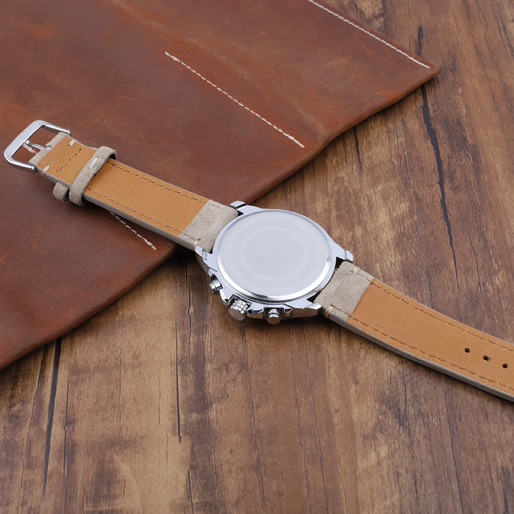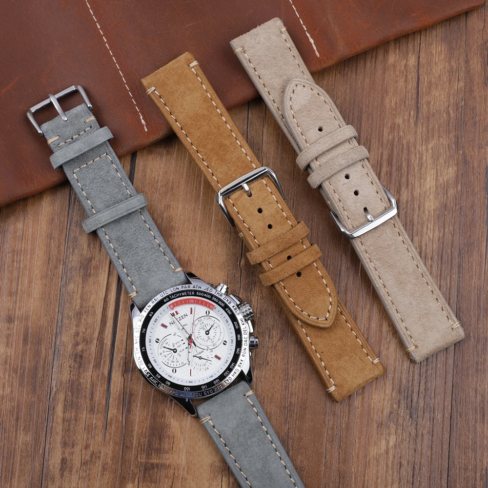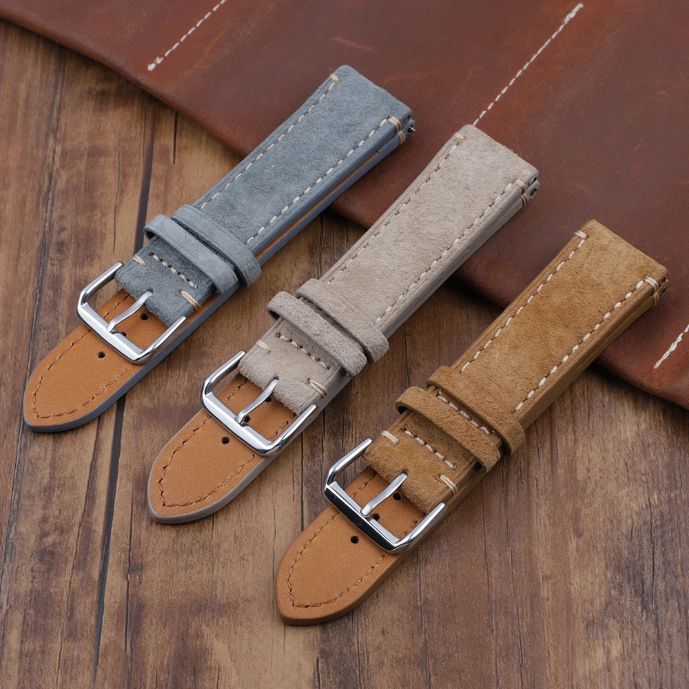 Ремешок замшевый для часов Brwon, браслет из качественной кожи серого цвета, аксессуары для часов, Прошитый браслет ручной работы, 18 мм 20 мм 22 мм