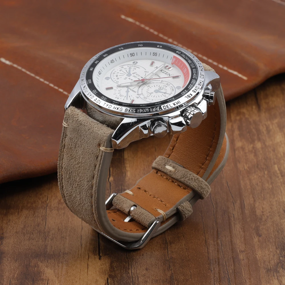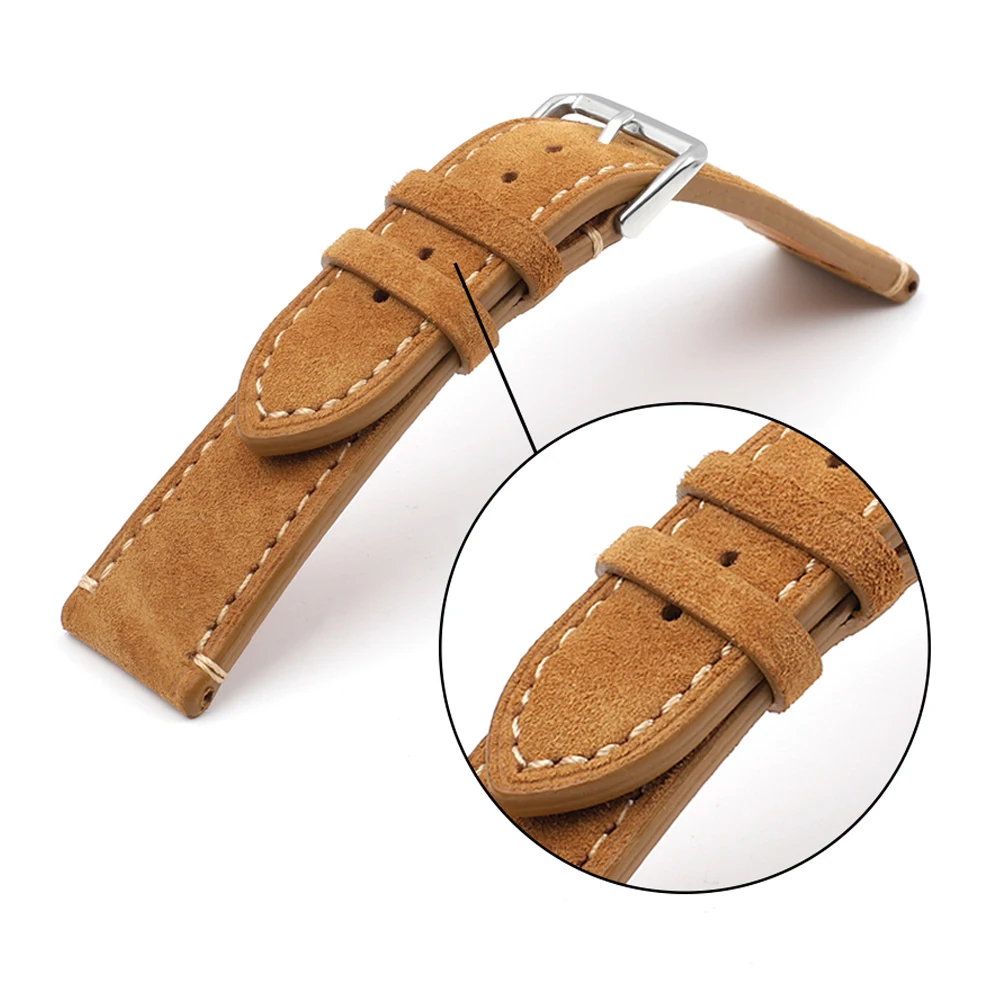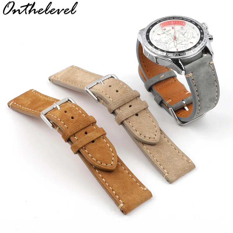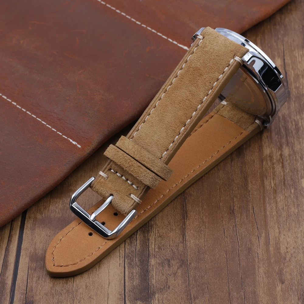 Ремешок замшевый для часов Brwon, браслет из качественной кожи серого цвета, аксессуары для часов, Прошитый браслет ручной работы, 18 мм 20 мм 22 мм