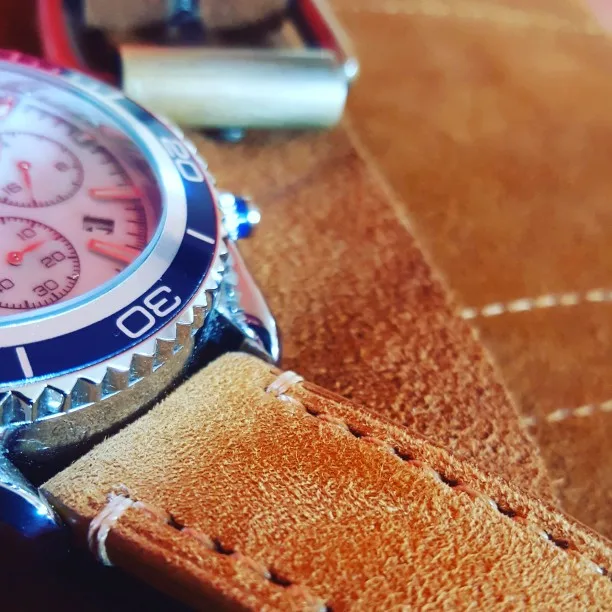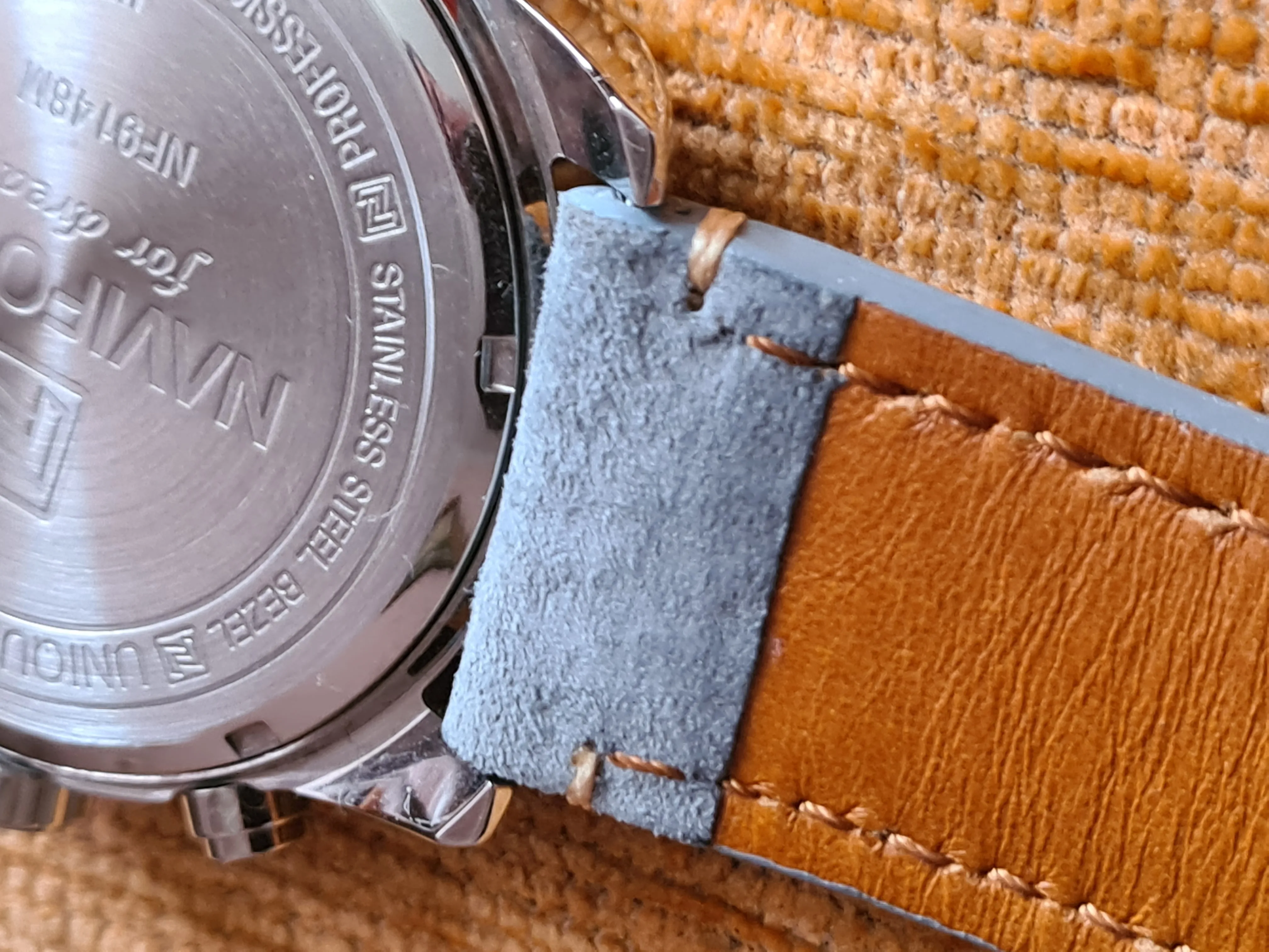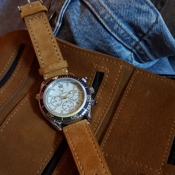 Браслет выглядит хорошо. Как только получил, показалось, что это картон, а не замша) потом дома посмотрел, примерил на часах. Круто. Очень добавляет винтажности моим часам