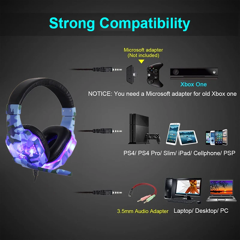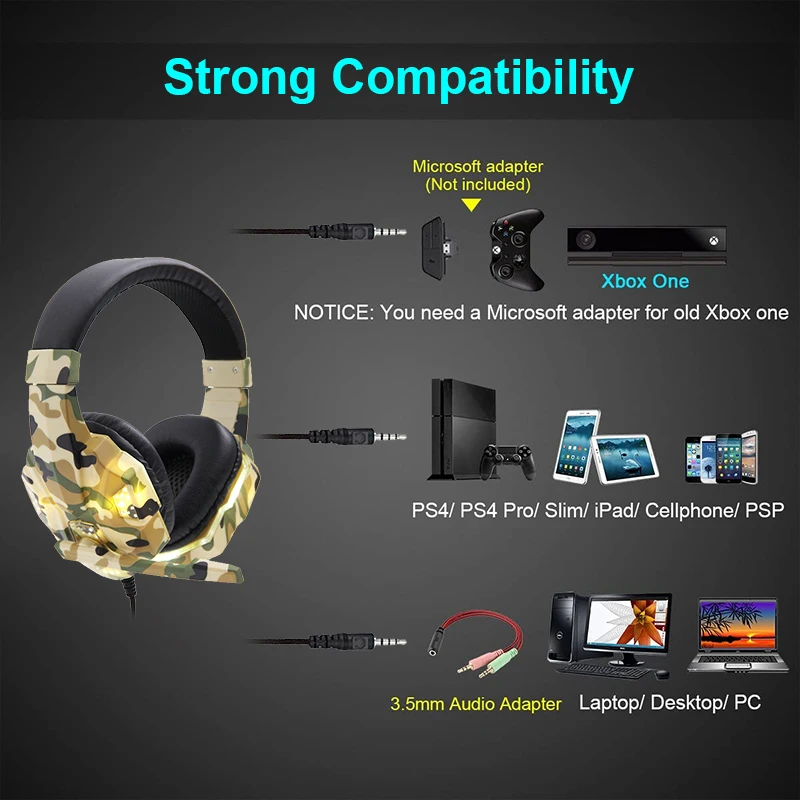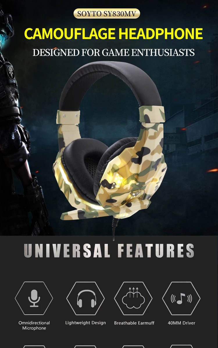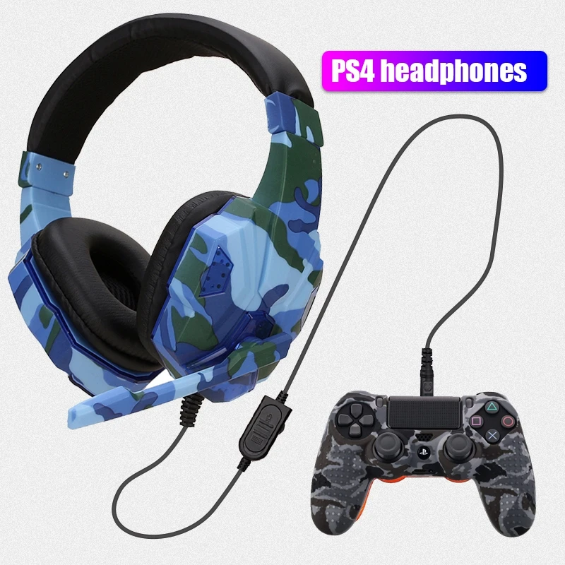 Игровая гарнитура Camouflag с разъемом 3,5 для PS4, PS5, ПК, проводные геймерские наушники с микрофоном, игровой шлем для телефона, силиконовый чехол для PS4