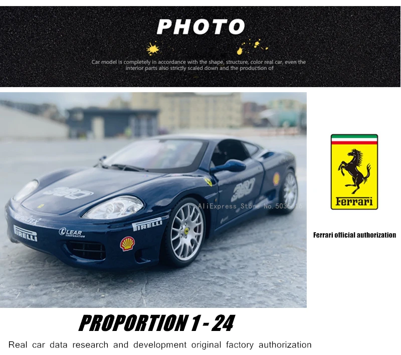 Описание товараBburago 1:24 Ferrari 360 Challenger Racing авторизованное моделирование сплав модель автомобиля ремесла Коллекция игрушек инструменты