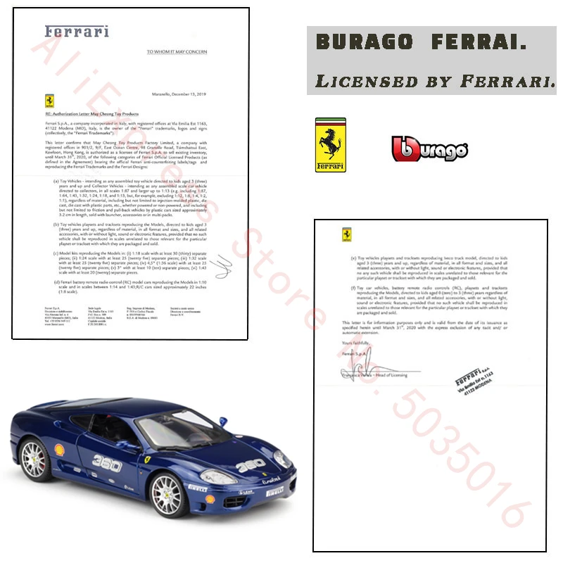 Оригинальная Авторизованная модель автомобиля Bburago 1:24 Ferrari 360, коллекционная декоративная игрушка, модель литья под давлением
