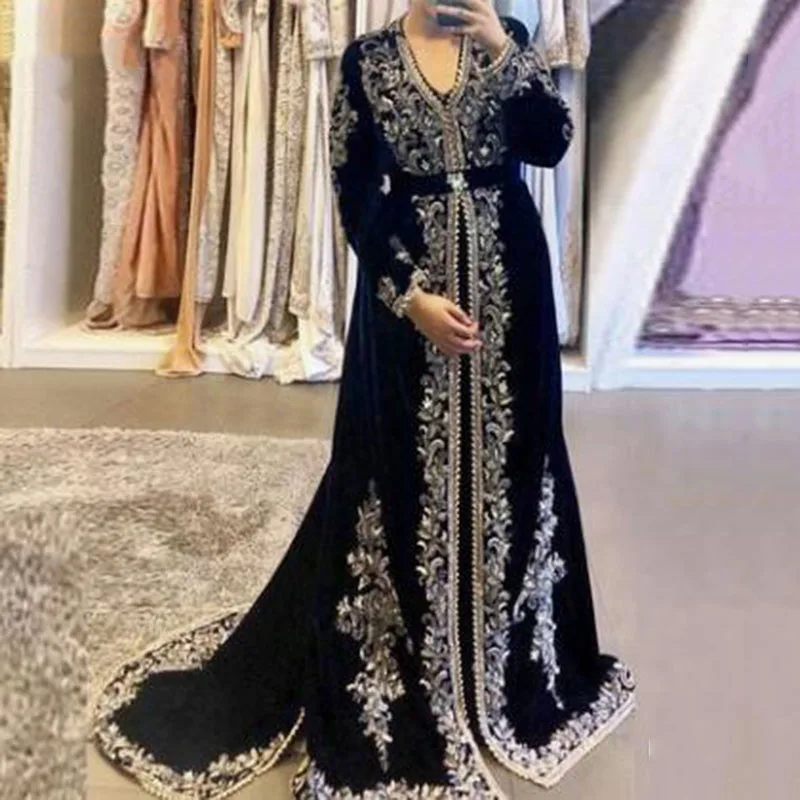 Женское длинное вечернее платье с аппликацией, сарафан из марокканс...