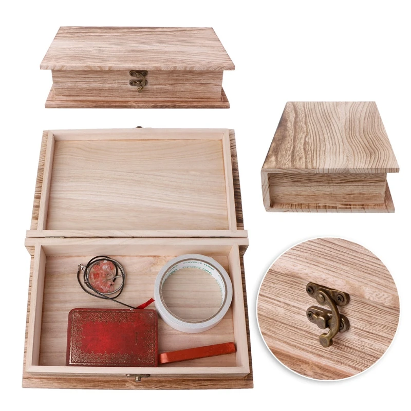 1 шт. деревянный откидной запирающийся ящик в форме книги, чехол для хранения ювелирных изделий, органайзер для хранения мелочей, подарочная коробка