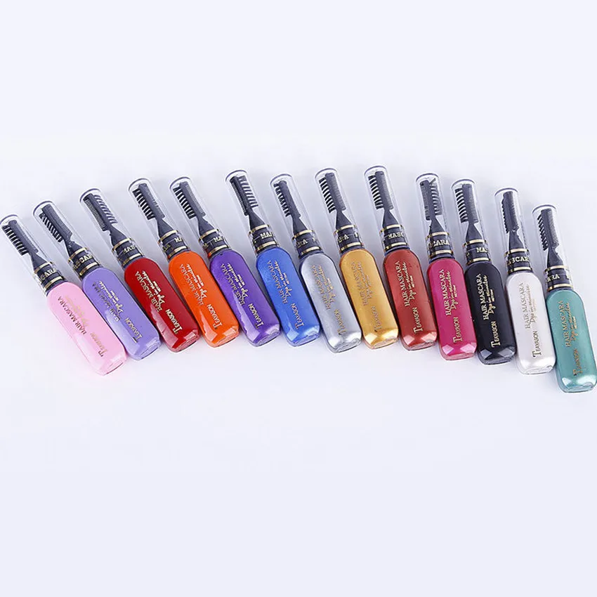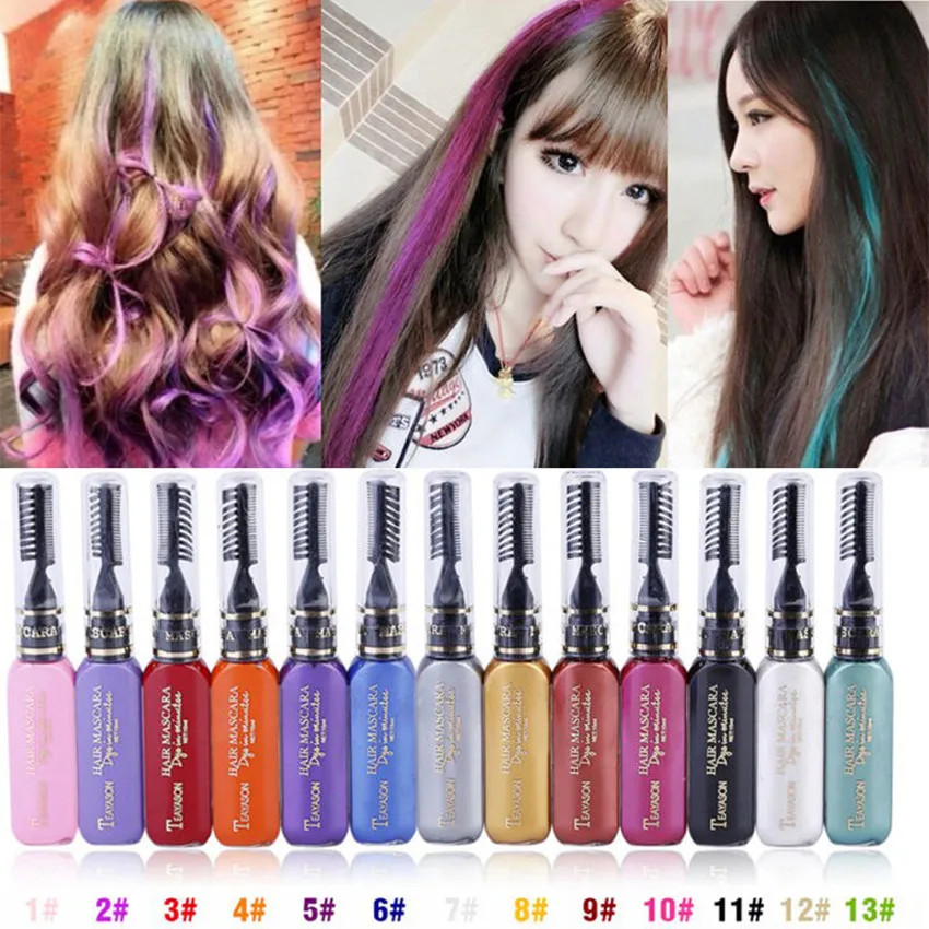 Нетоксичная Временная мини-расческа для окрашивания волос 13 цветов, цветная тушь для волос сделай сам, одноразовый моющийся набор инструментов для косплея для салона, для вечеринки