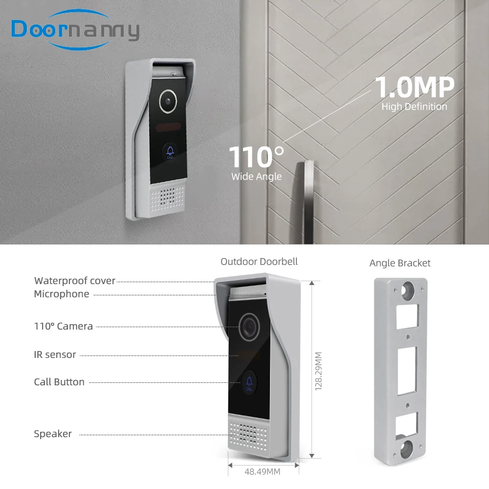 ♦Датчик камеры: 720P♦Угол обзора: 110 °♦Источник питания: поставляется с внутреннего монитора♦Материал: панель из алюминиевого сплава♦Водонепроницаемость: IP65 защита от атмосферных воздействий♦Istallation: поверхностное крепление